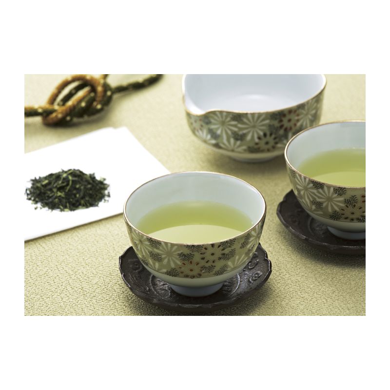静岡茶の『深蒸し』と比べ『浅蒸し』といわれ、宇治茶の色は黄色みを帯びた緑色。薄味で、喉を通るとお茶のうまみと香りが豊かに広がります。