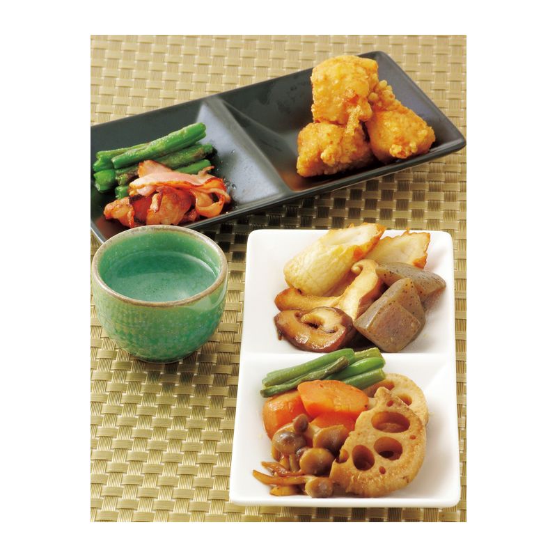 鮮やかな色とサラリとしたうまさのしぼりたて生しょうゆと塩分を25%カットし、まろやかな味わいの塩分ひかえめ丸大豆生しょうゆを中心に調理に役立つ食材をセットしました。