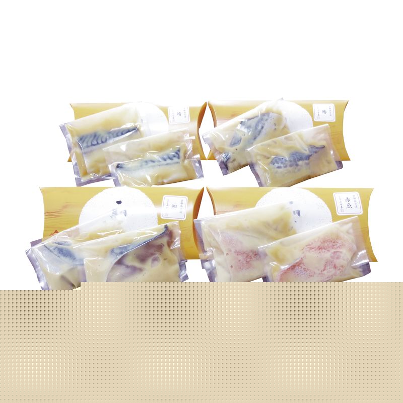 京都の有名店監修の西京焼き詰合せ。シンプルながらも味わい深い味噌の風味と魚の美味しさが絶妙の逸品です。
