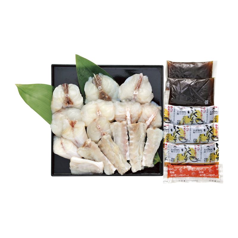 まふくちり身・アラ400g×1、ふく鍋だし45g×2、ポン酢35g×3、モミジオロシ16g×1