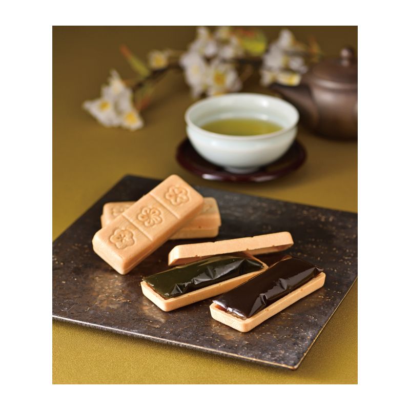 創業文久元年、宇治の老舗茶屋「北川半兵衛商店」の厳選抹茶、ほうじ茶を使ったみずみずしい餡を、国産餅米使用の香ばしい最中種にはさんでお召し上がりください。