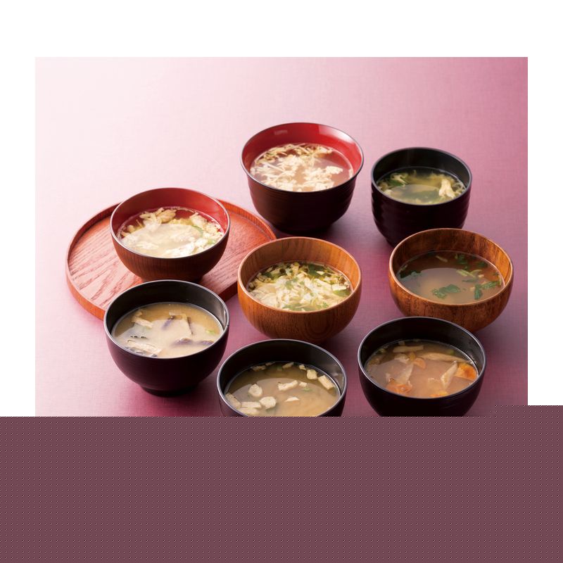 おもてなしの心を込めて美味しさを追求した至福の一杯です。和の匠、道場六三郎監修のもと本格的な味を実現しました。できたてを急速冷凍乾燥させるフリーズドライ製法で美味しさをそのままパックしました。具材の栄養は損なわれることなく、色つや、食感もできたてのスープのまま!ご家庭で手軽にお楽しみいただける逸品です。