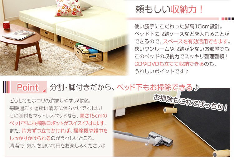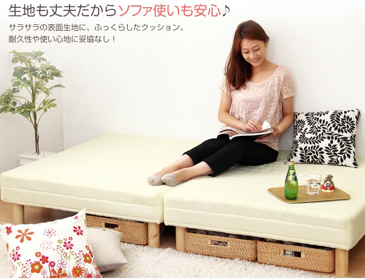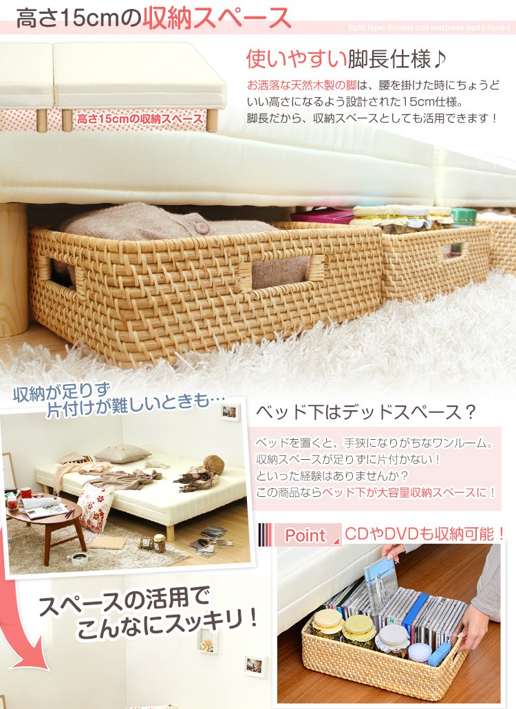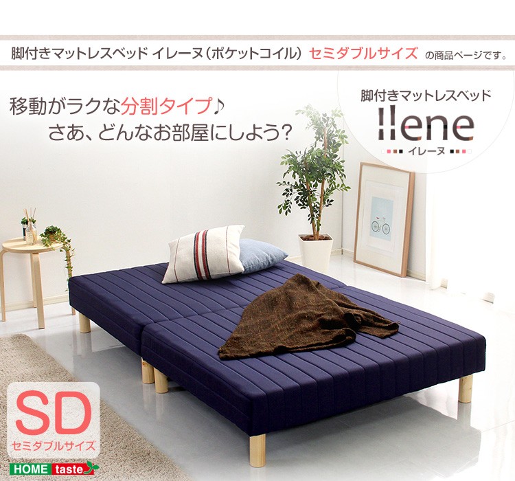 脚付きマットレスベッド【-Ilene-イレーヌ】(ポケットコイル・セミダブル用)移動がラクな分割式タイプ!