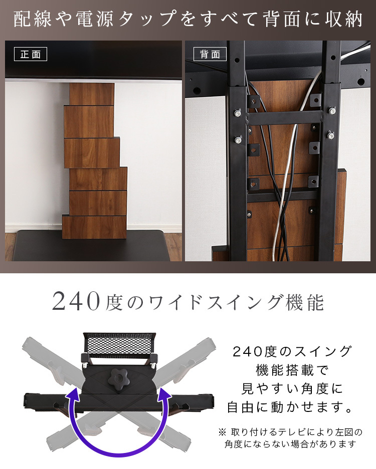 デザインスタンド 壁寄せテレビスタンド スイング 高さ調整