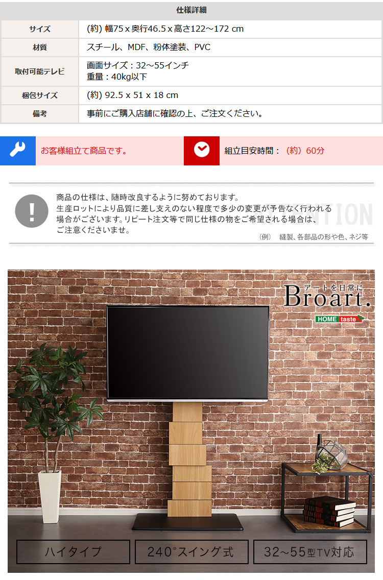 デザインテレビスタンド ハイスイングタイプ 【BROART-ブラート-】