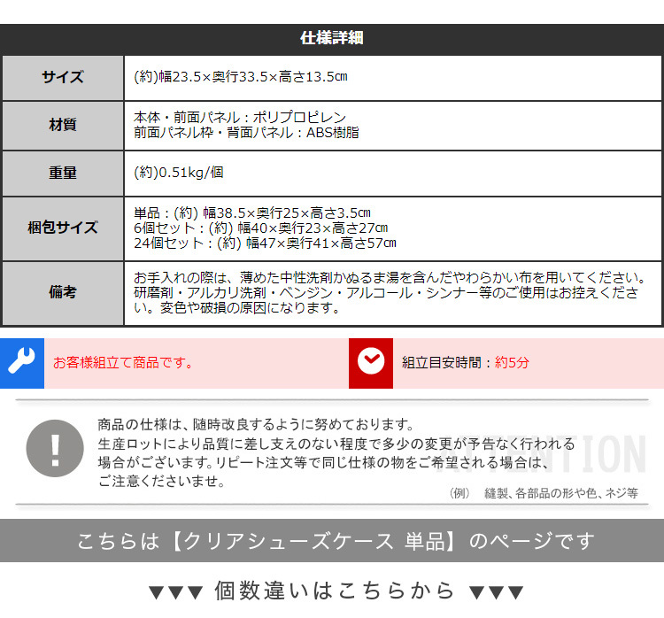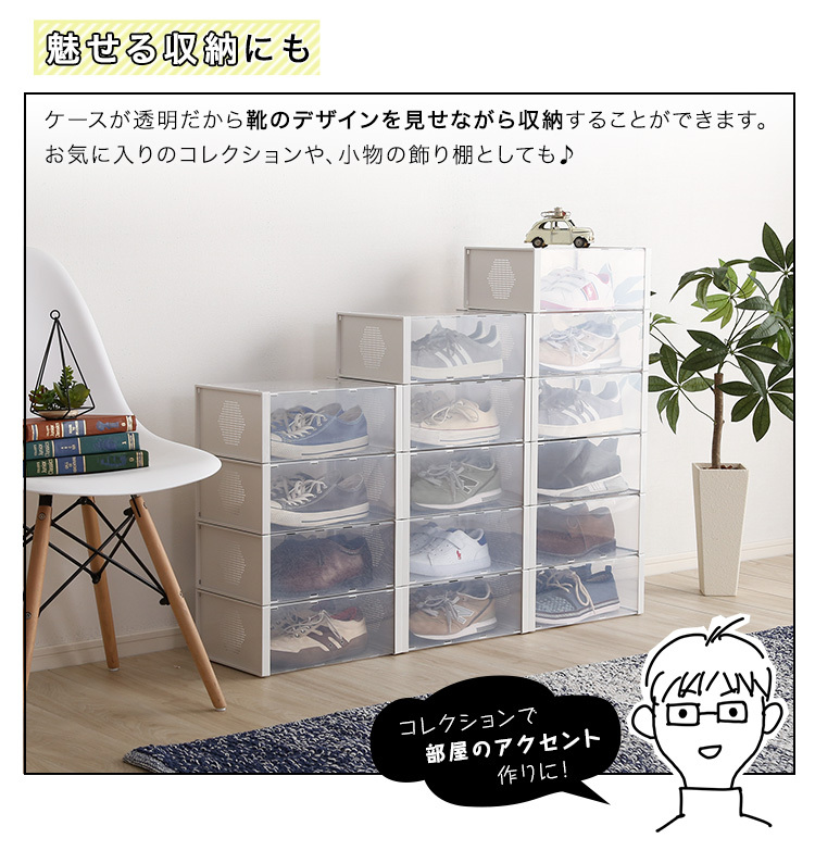 組み合わせ自由自在 クリアシューズケース 1個【Clarte-クラルテ-】