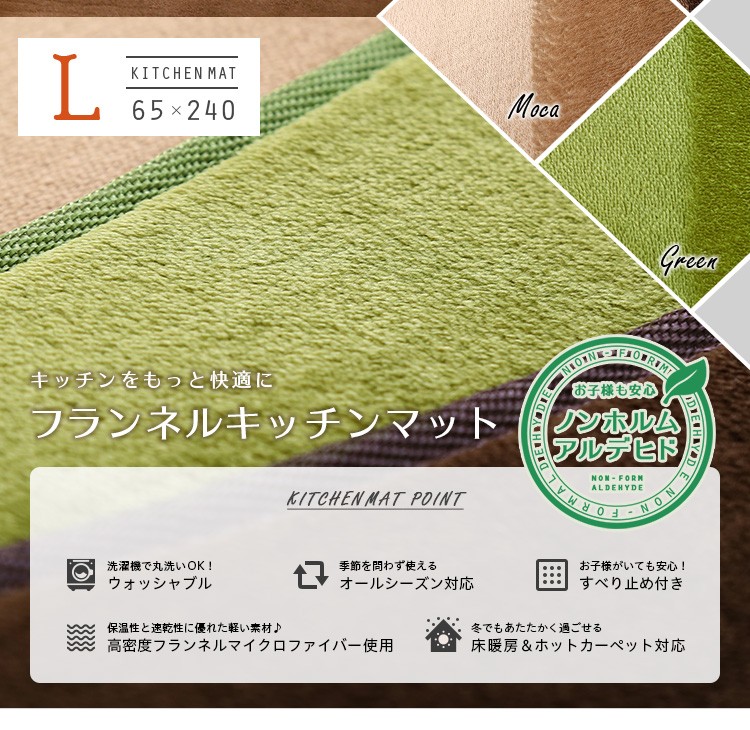 高密度フランネルマイクロファイバー・キッチンマットLサイズ(65×240cm)洗えるラグマット【Naltorea-ナルトレア-】