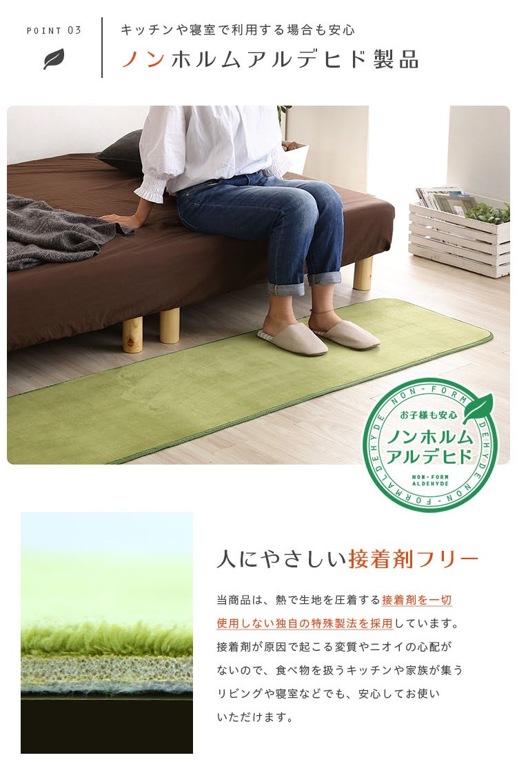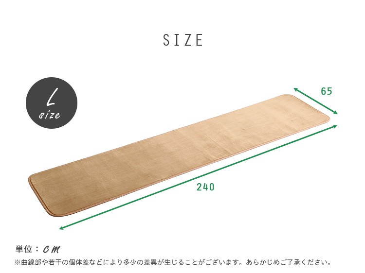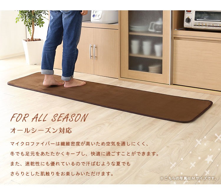 ゴミの絡まりにくい短毛マイクロファイバーのキッチンマットLサイズ(65×240cm)。超極細繊維を180gの高密度で織り込んだマイクロファイバー素材は極上の肌触り。