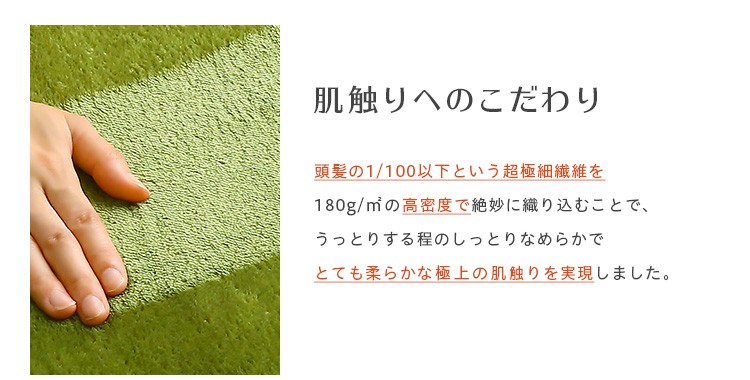 ゴミの絡まりにくい短毛マイクロファイバーのキッチンマットSサイズ(50×180cm)。超極細繊維を180g/?の高密度で織り込んだマイクロファイバー素材は極上の肌触り。