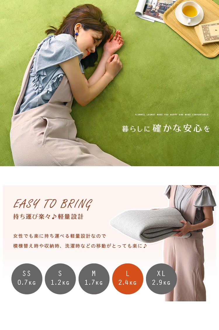 高密度フランネルマイクロファイバー・ラグマットLサイズ(200×250cm)洗えるラグマット|ナルトレア