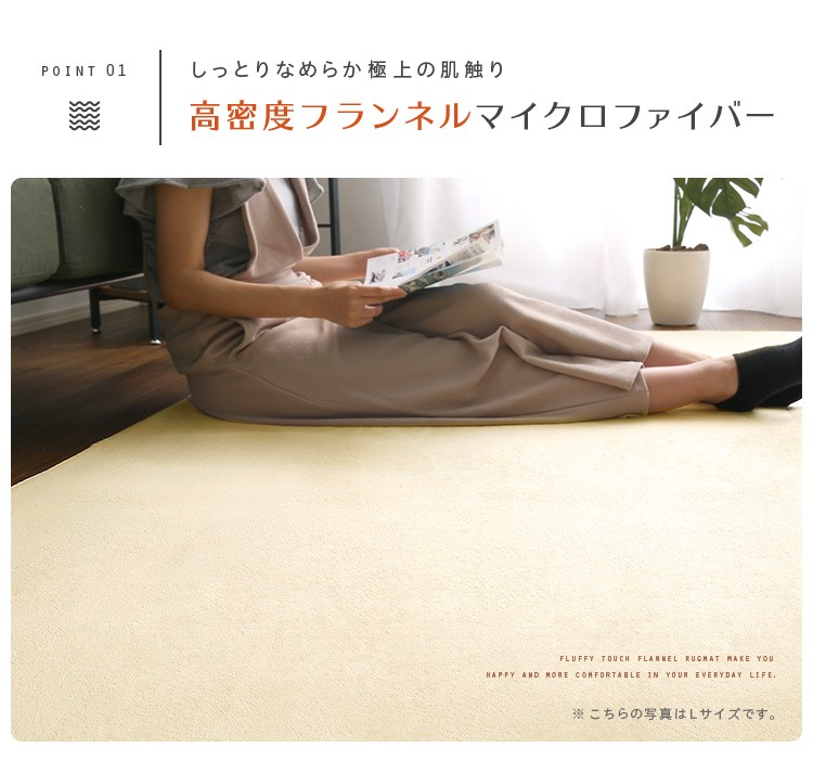高密度フランネルマイクロファイバー・ラグマットSサイズ(130×185cm)洗えるラグマット|ナルトレア