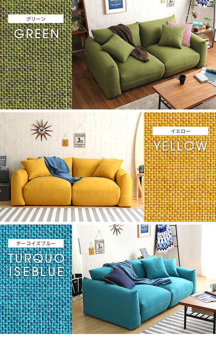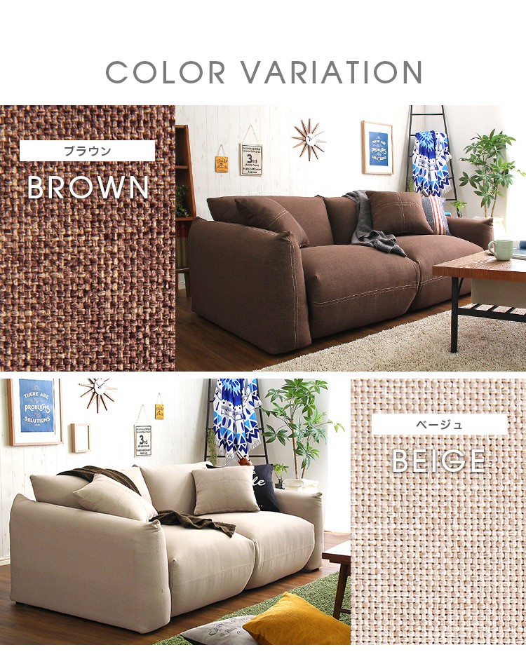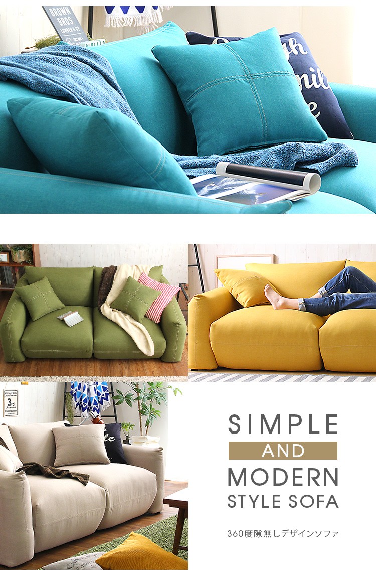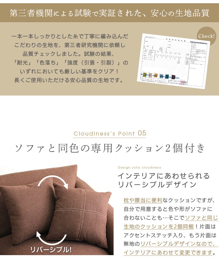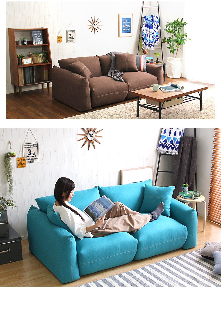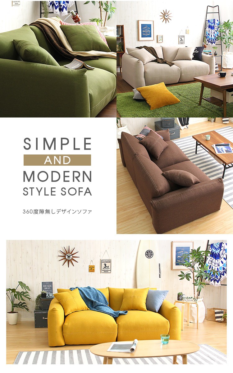 2.5人掛けデザインソファ(クッション2個付き) シンプルモダンローソファ 布地|Cloudiness-クラウディネス-