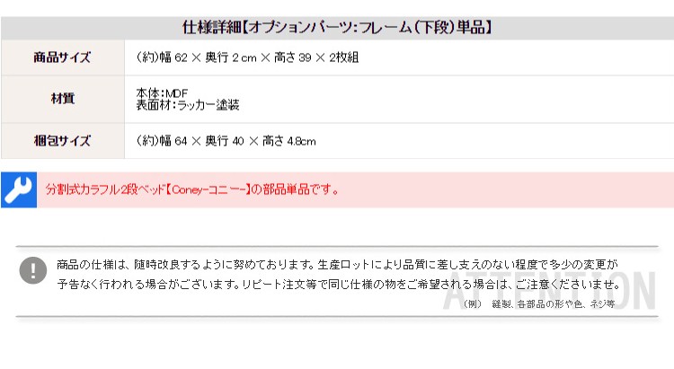 色を変えれる専用フレーム下段用【Coney-コニー-】(2段 カラフル 高さ調整)