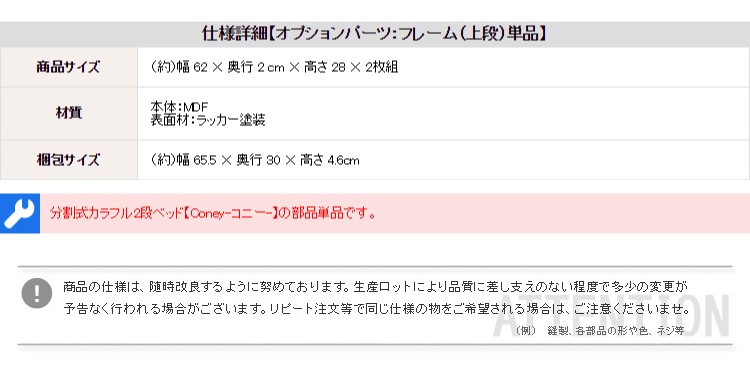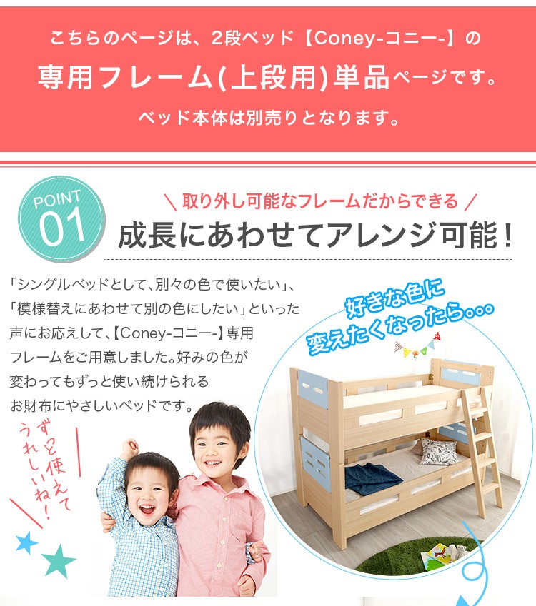 色を変えれる専用フレーム上段用【Coney-コニー-】(2段 カラフル 高さ調整)