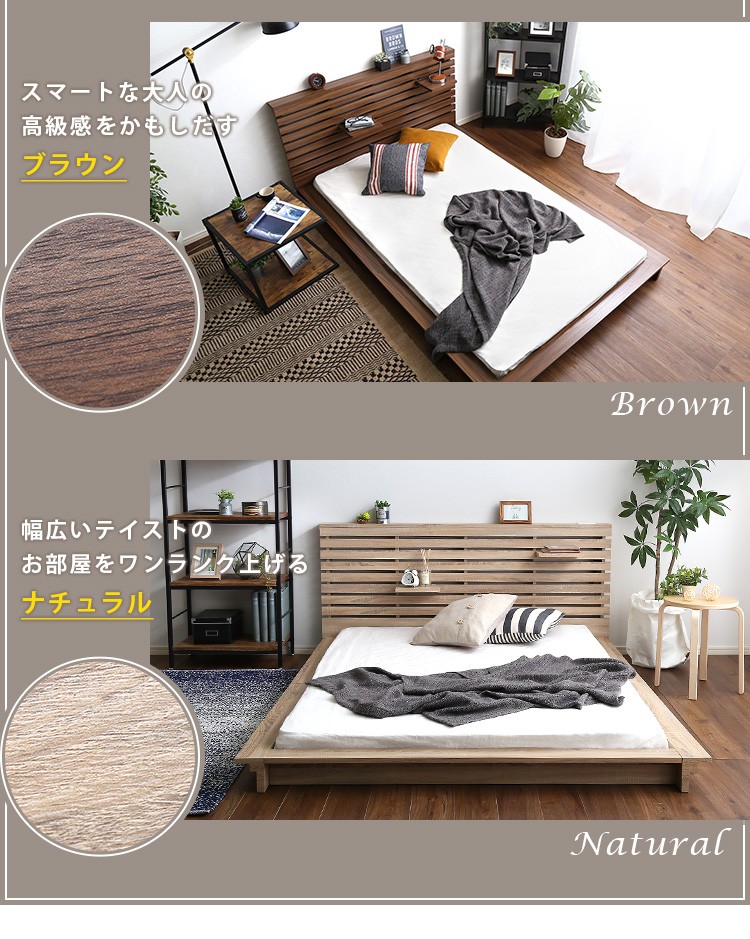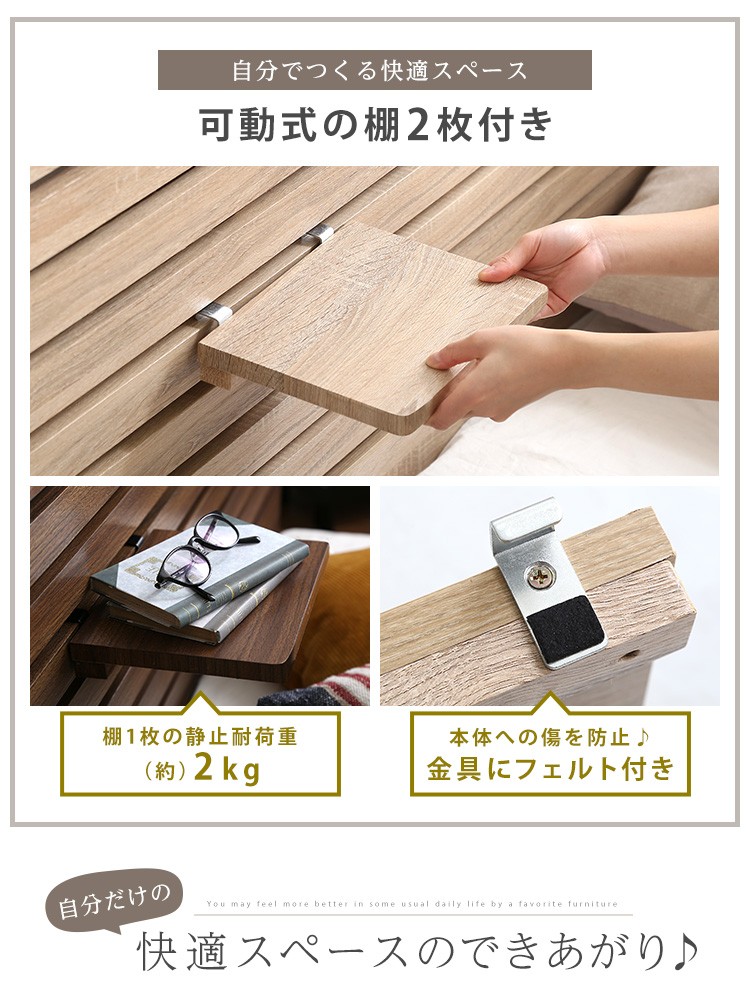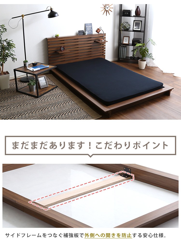 可動棚付きフロアベッド(ダブル)ベッドフレーム、ロースタイル、スリムヘッドボード|Rodelia-ロデリア-