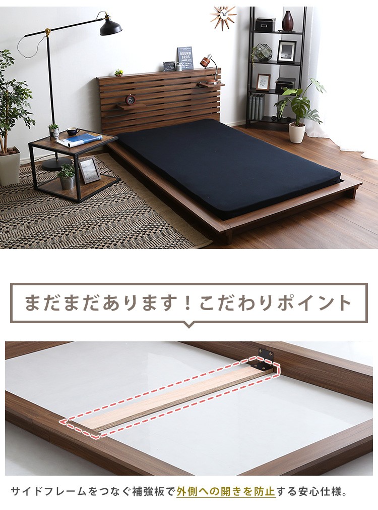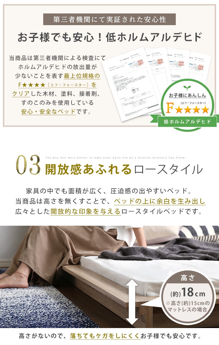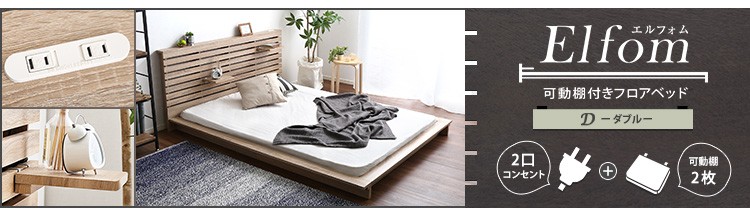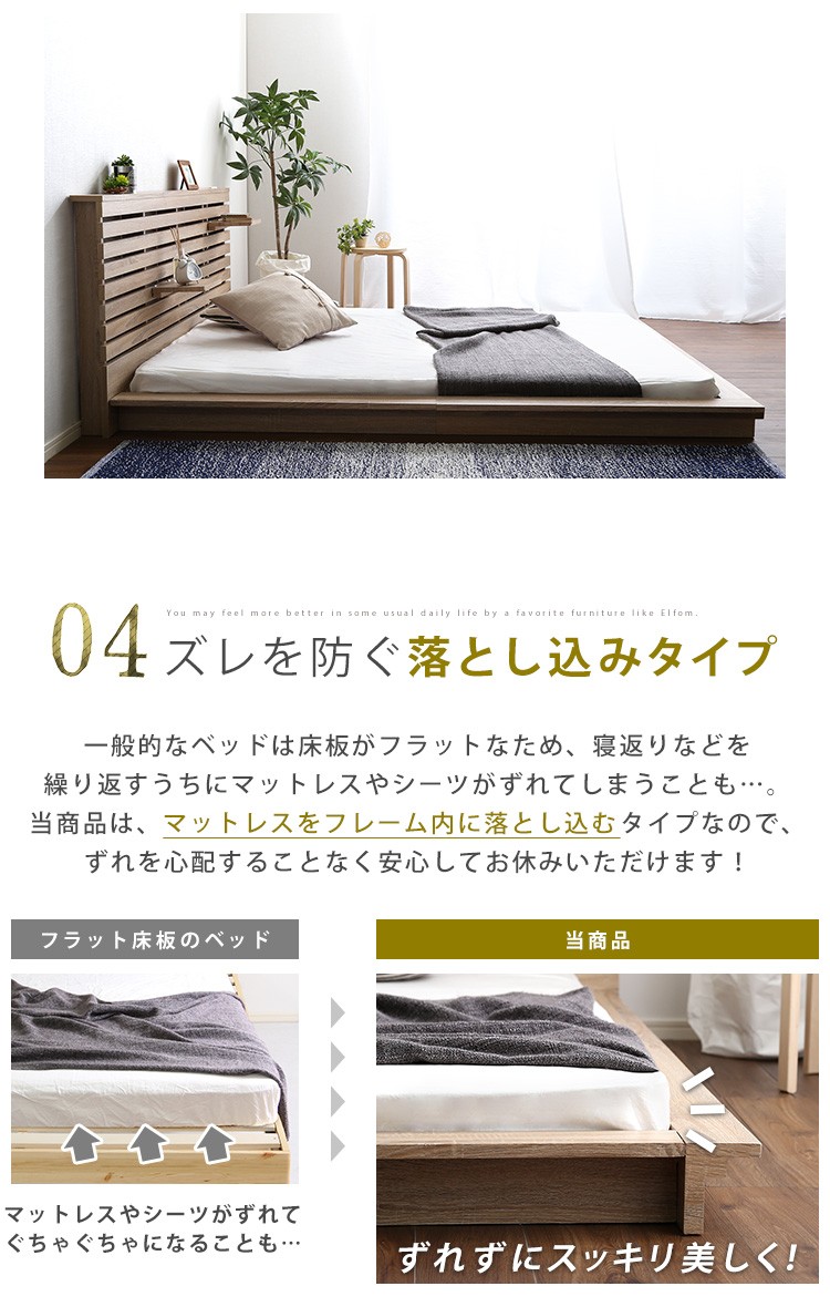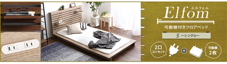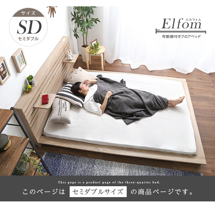 可動棚付きフロアベッド(セミダブル)ベッドフレーム、ロースタイル、スリムヘッドボード|Elfom エルフォム