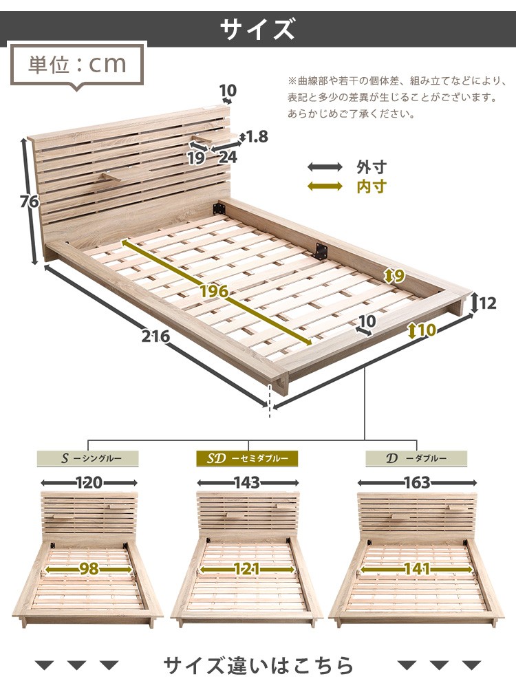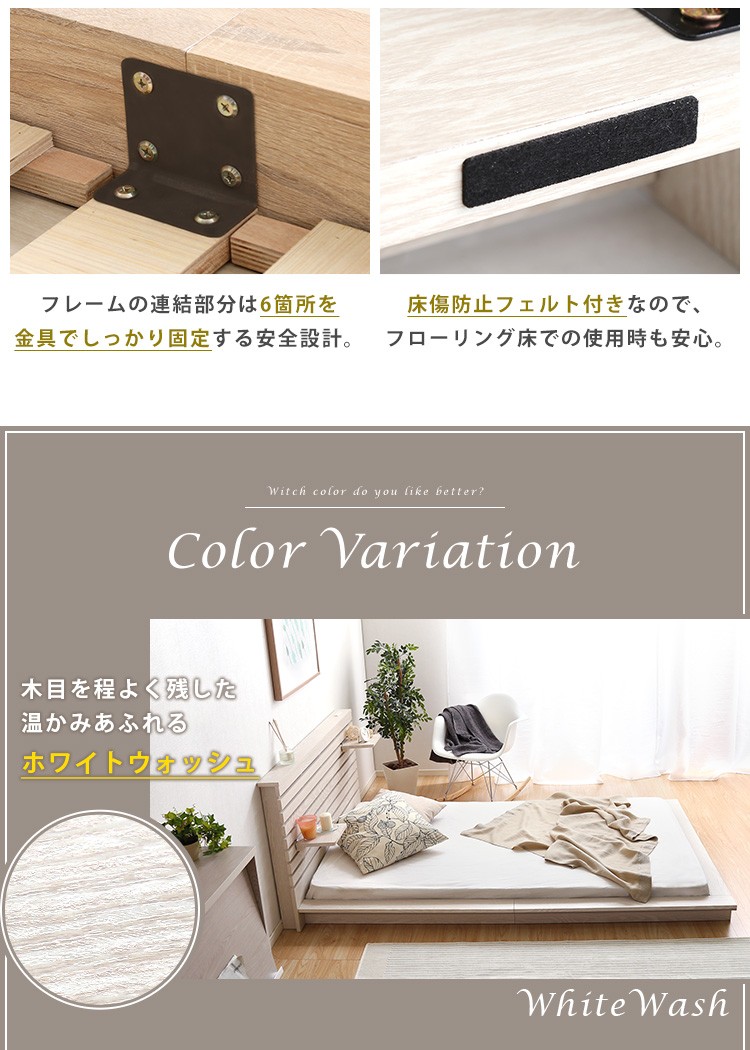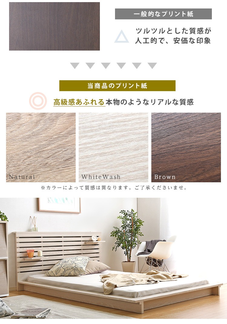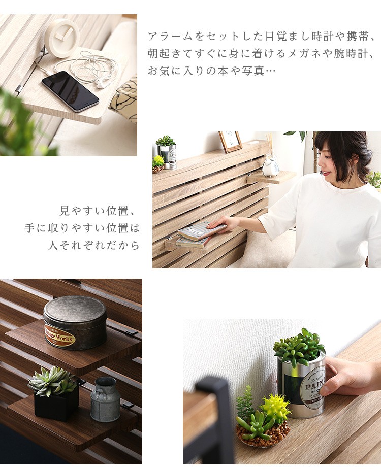 可動棚付きフロアベッド(セミダブル)ベッドフレーム、ロースタイル、スリムヘッドボード|Elfom エルフォム