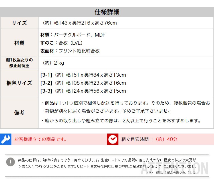 ・梱包サイズ:(3-1)(約)幅151x奥行84x高さ13cm