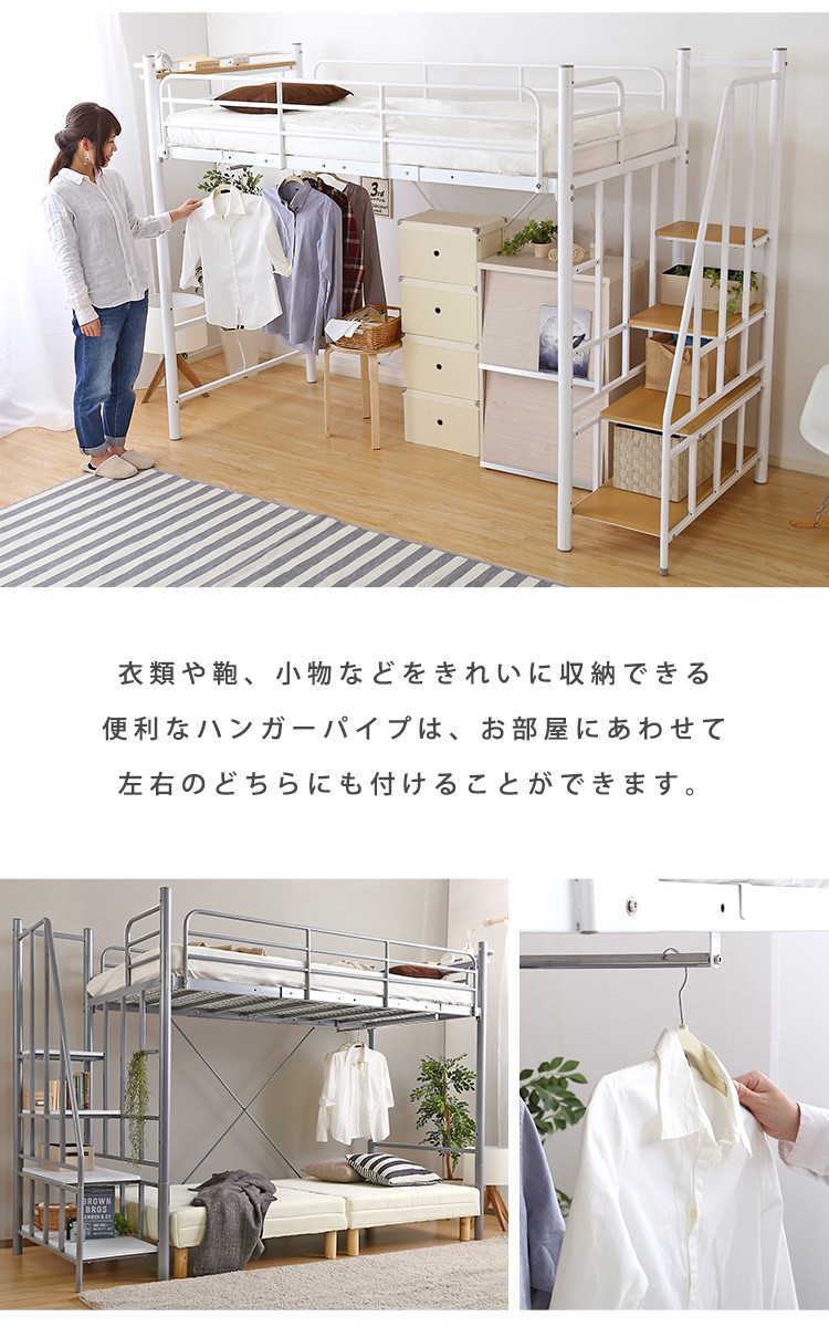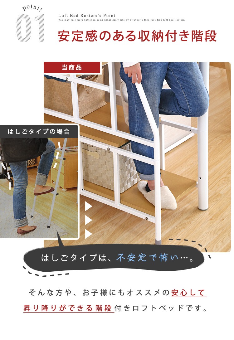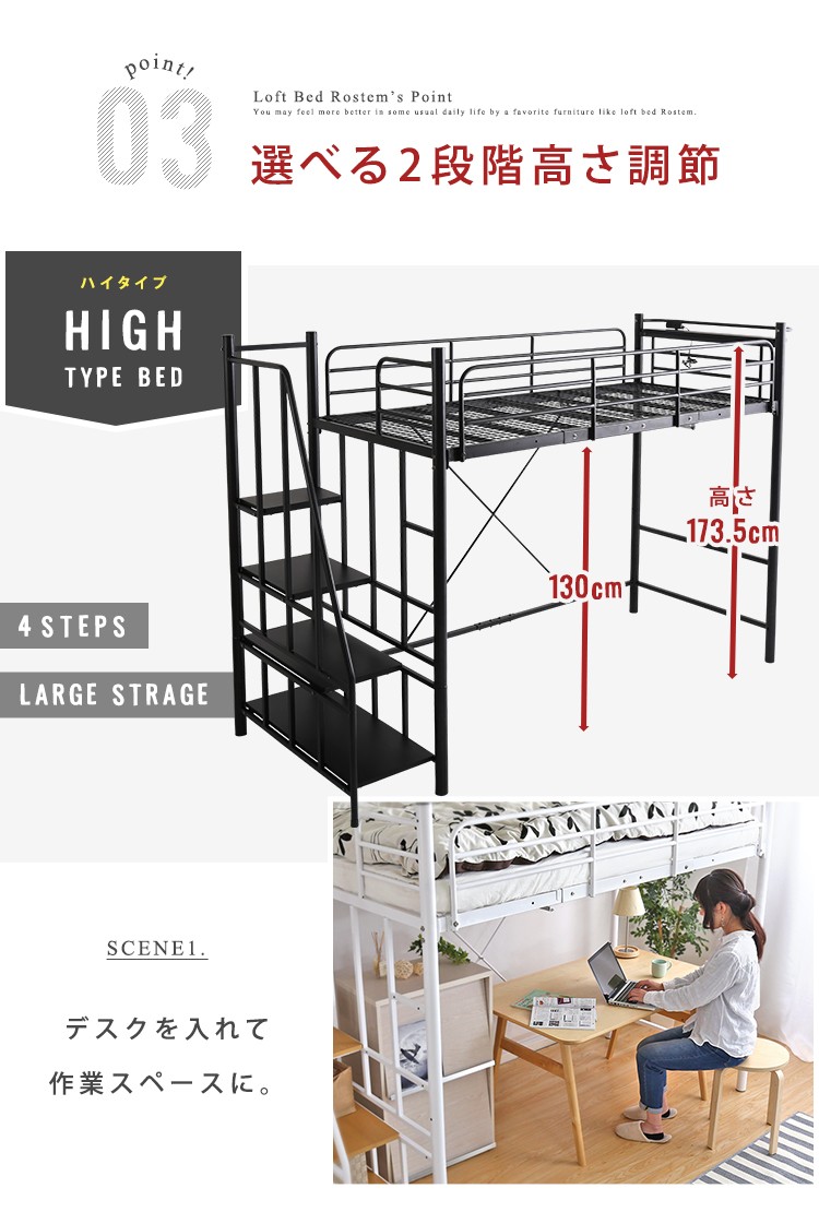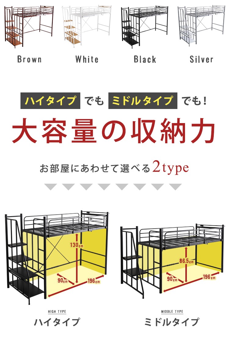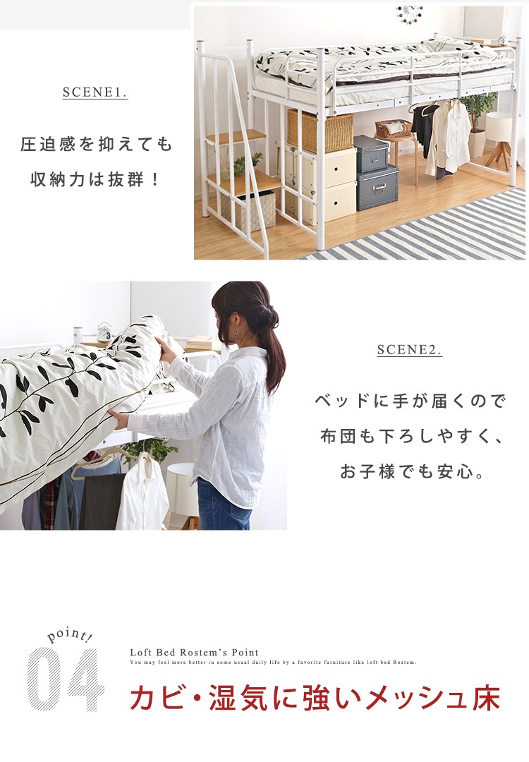 階段付パイプロフトベッド(4色)、ハイタイプでもミドルタイプでも選べる大容量の収納力 | Rostem-ロステム-