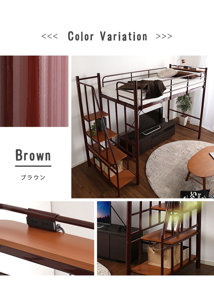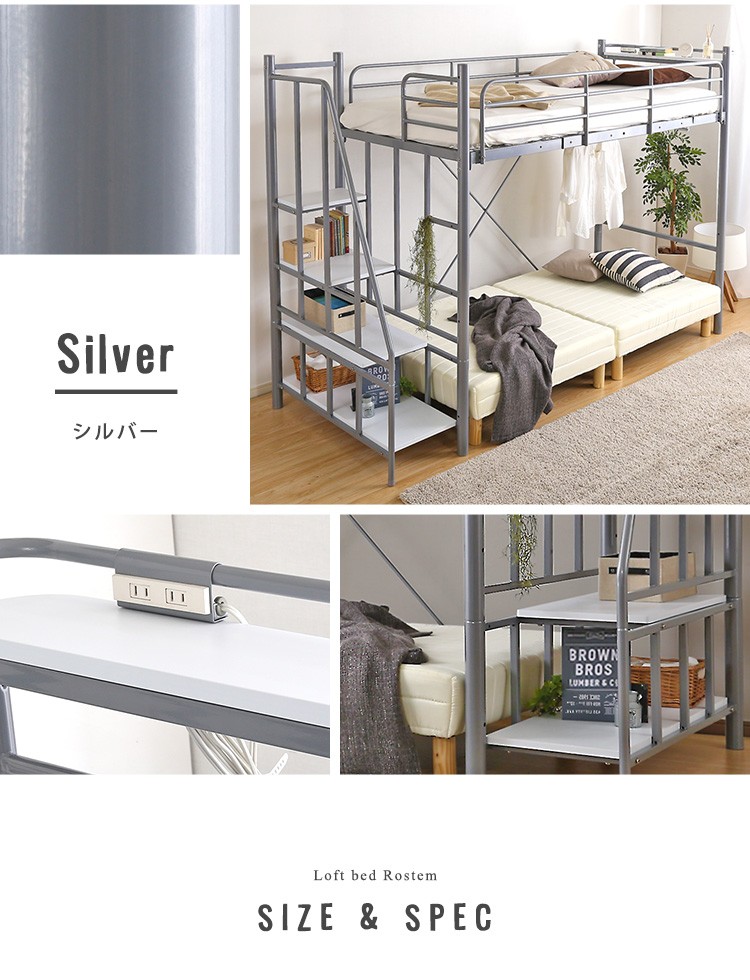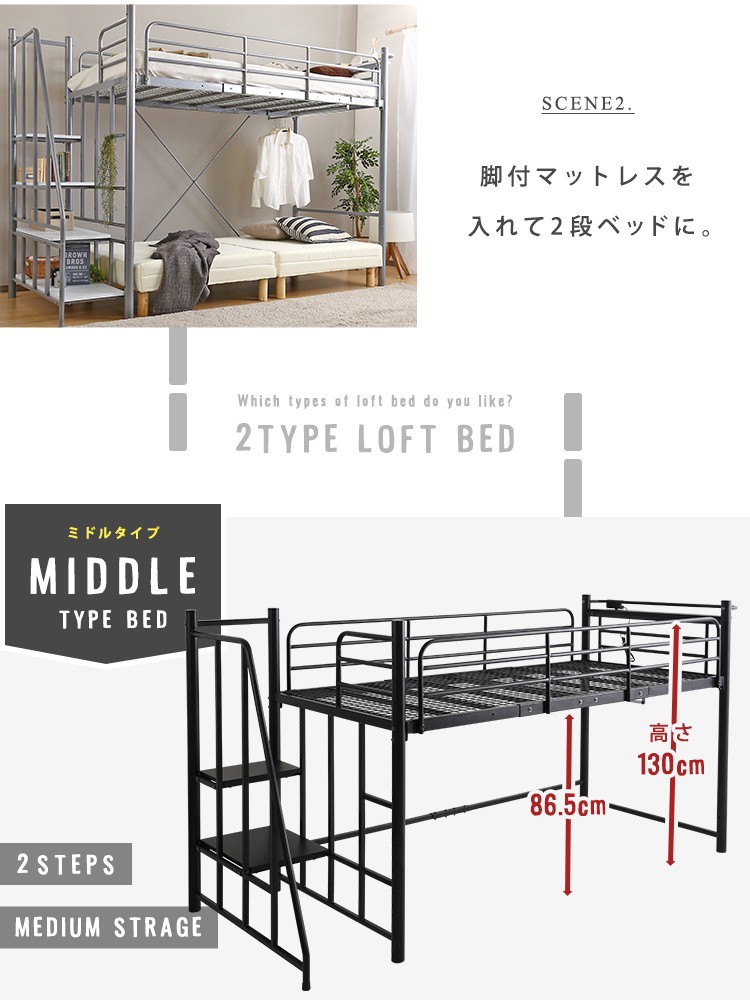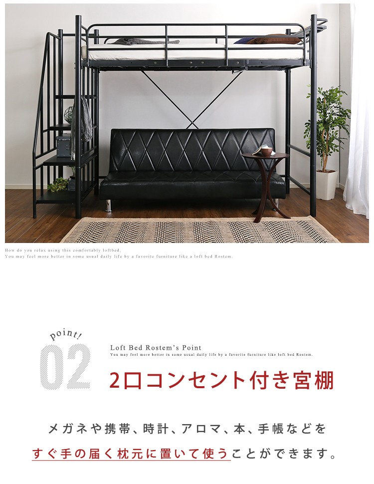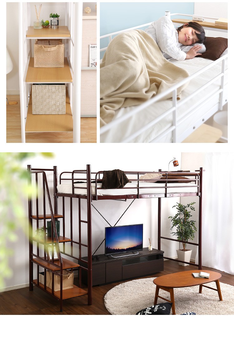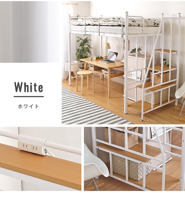 階段付パイプロフトベッド(4色)、ハイタイプでもミドルタイプでも選べる大容量の収納力 | Rostem-ロステム-