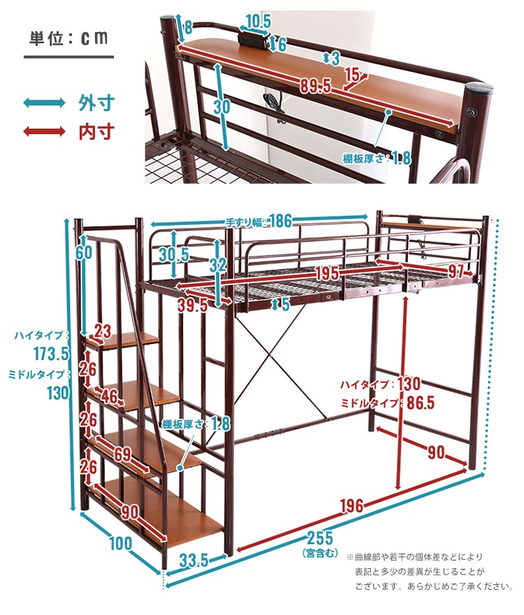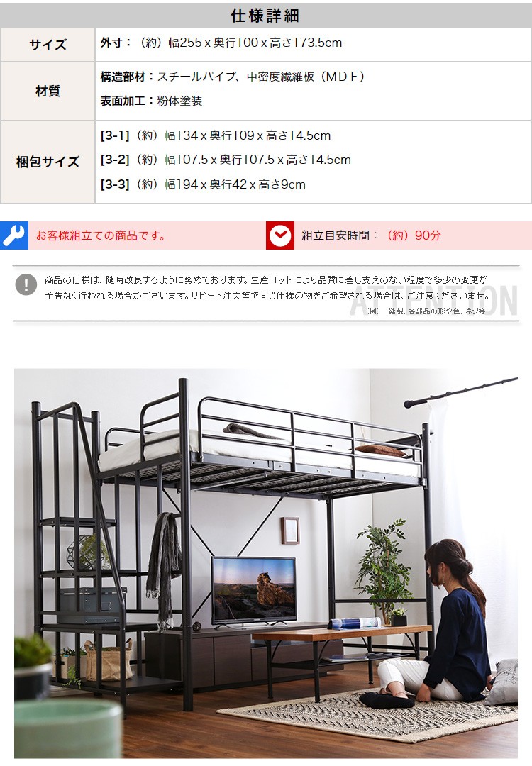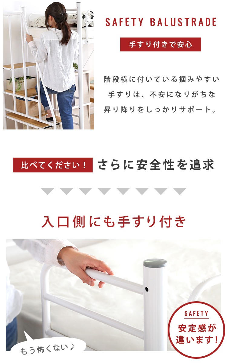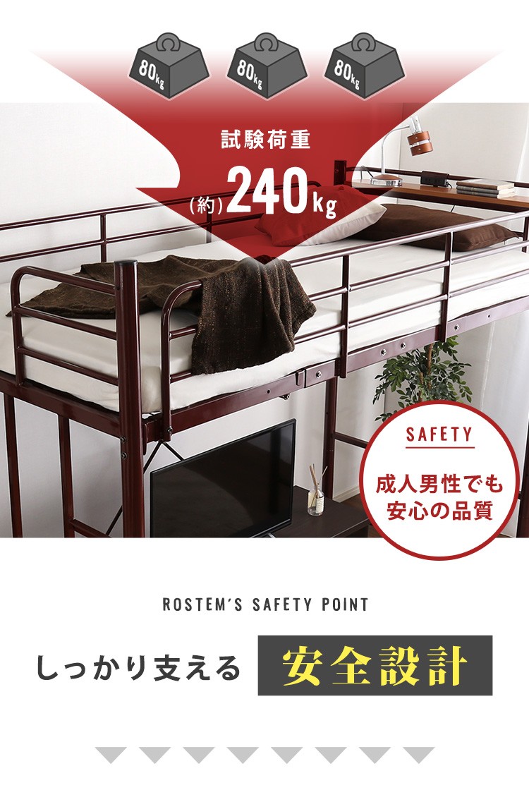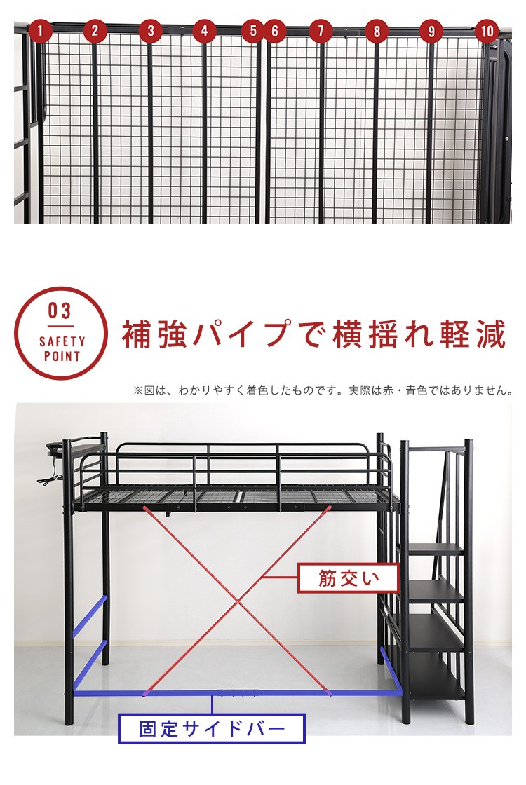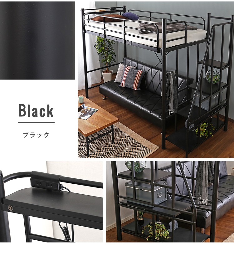 階段付パイプロフトベッド(4色)、ハイタイプでもミドルタイプでも選べる大容量の収納力 | Rostem-ロステム-