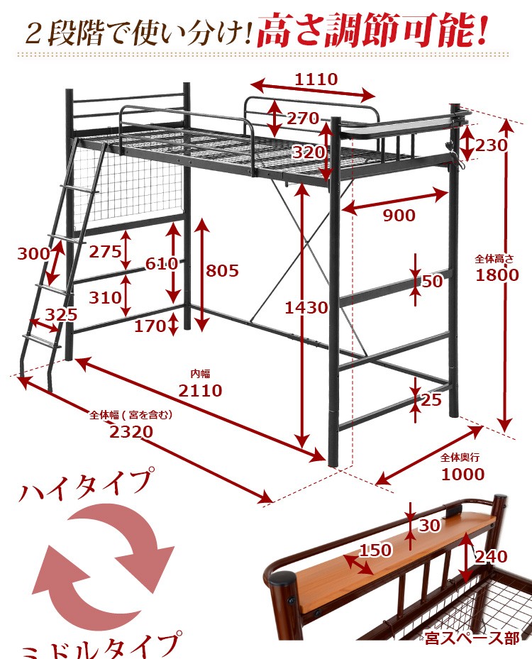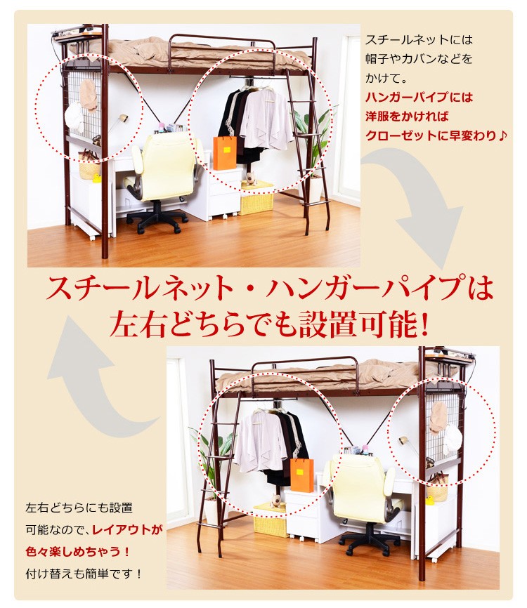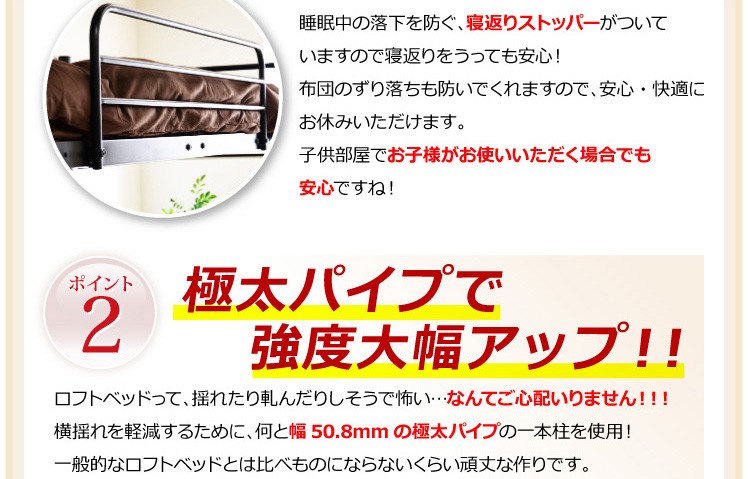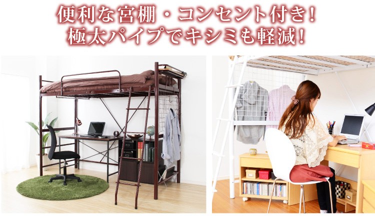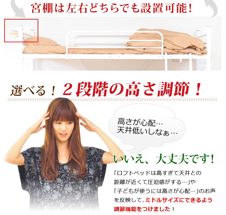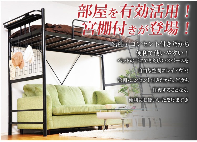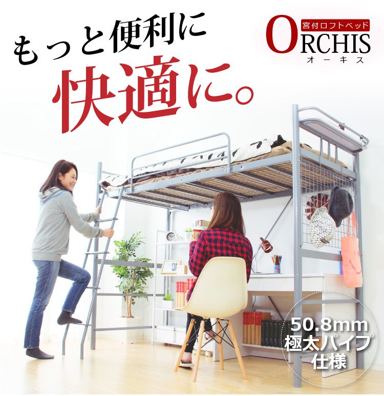 高さ調整可能!宮・コンセント付き ロフトベッド【ORCHIS-オーキス-】