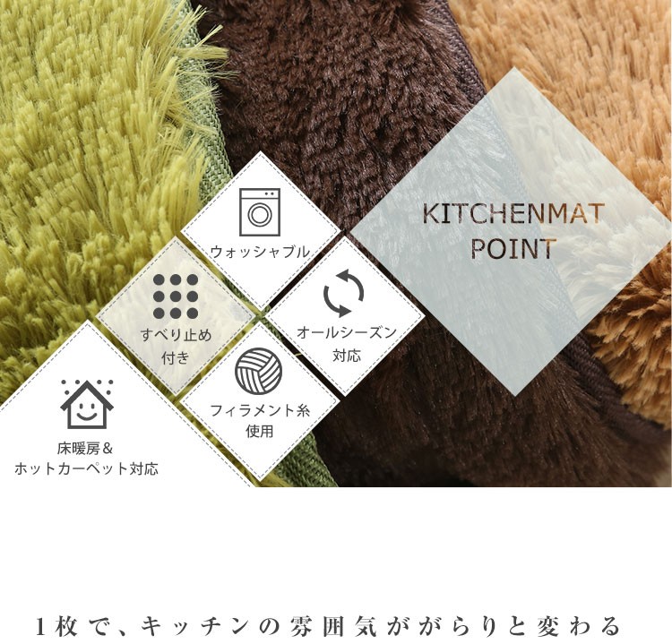 フィラメント・キッチンマットMサイズ(50×210cm)洗えるラグマット、オールシーズン対応【Watte-ヴァッテ-】