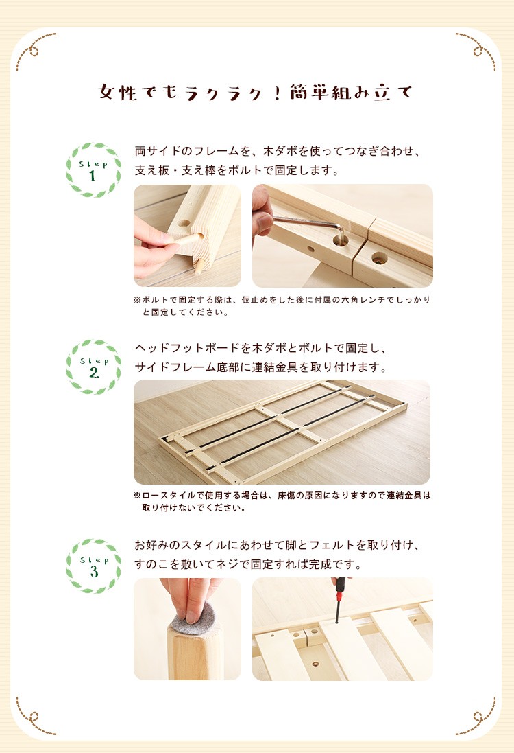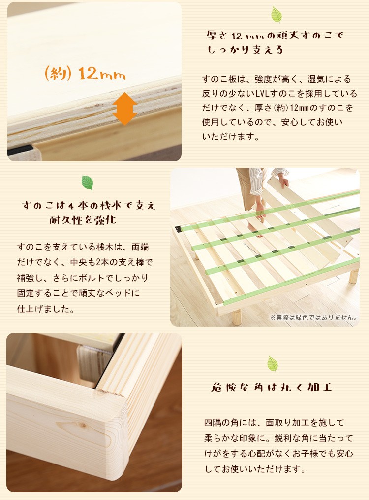 材質:フレーム:天然木(パイン材)、すのこ:積層合板(LVL)