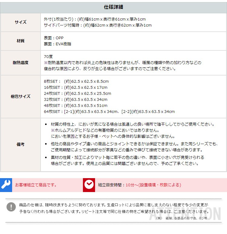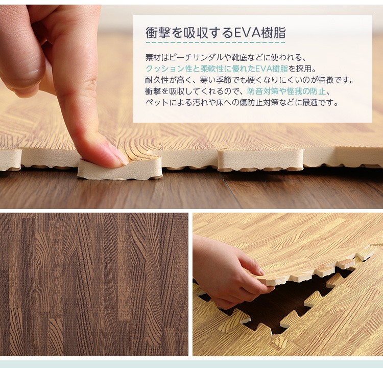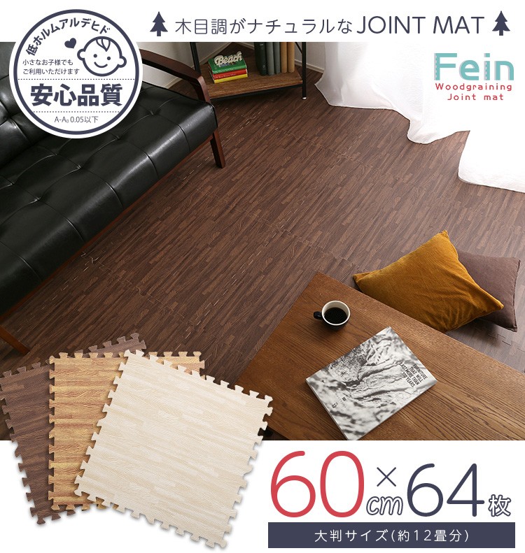 サイドパーツ付き!ナチュラルな木目調ジョイントマット 64枚セット(大判60cm)安心の低ホルムアルデヒド、防音、保温【Fein-ファイン-】
