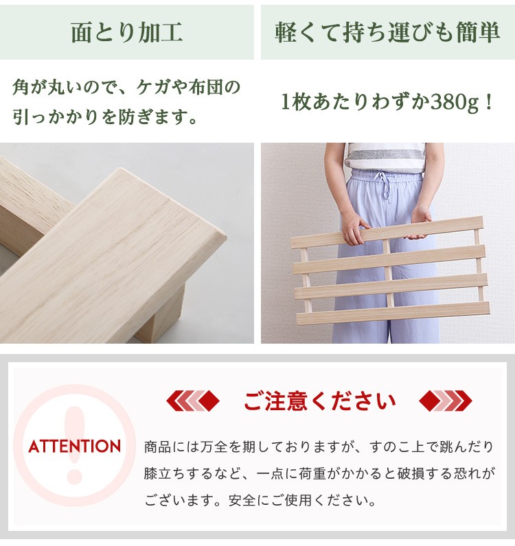 天然木使用 通気性抜群 抗菌・防カビ・調湿効果 軽量押し入れ桐すのこ 2枚入り ナチュラル