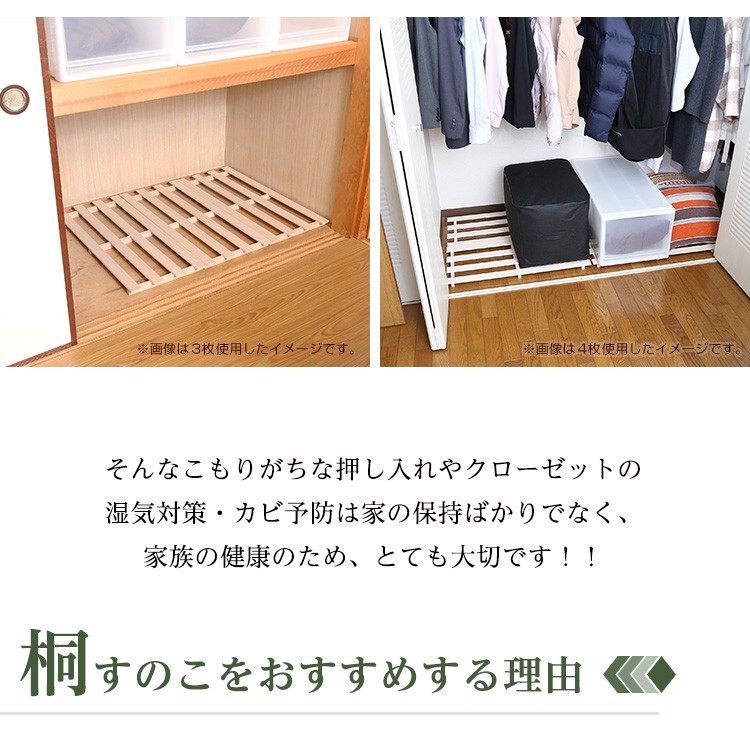 天然木使用 通気性抜群 抗菌・防カビ・調湿効果 軽量押し入れ桐すのこ 2枚セット