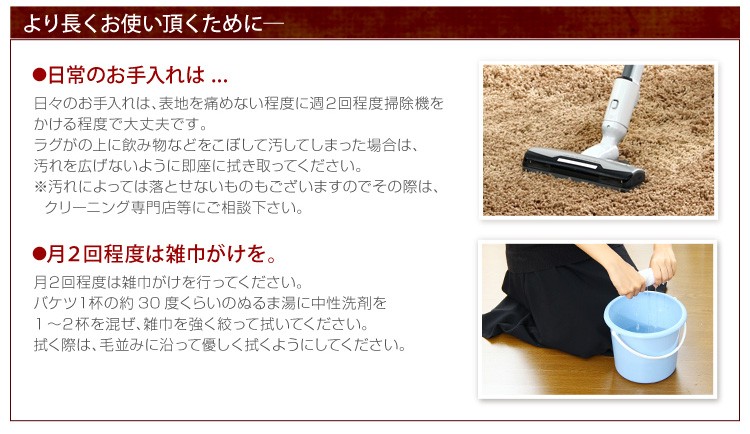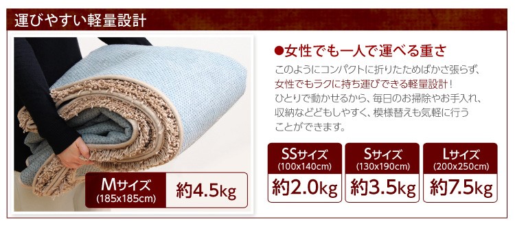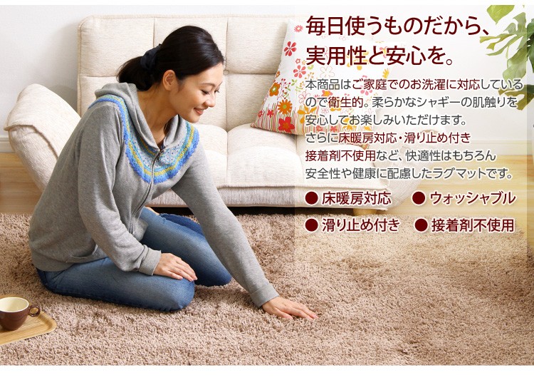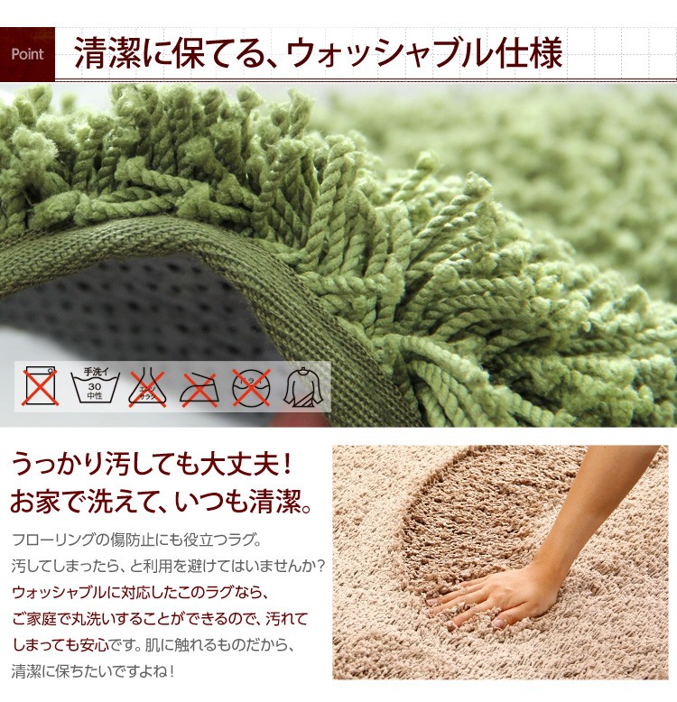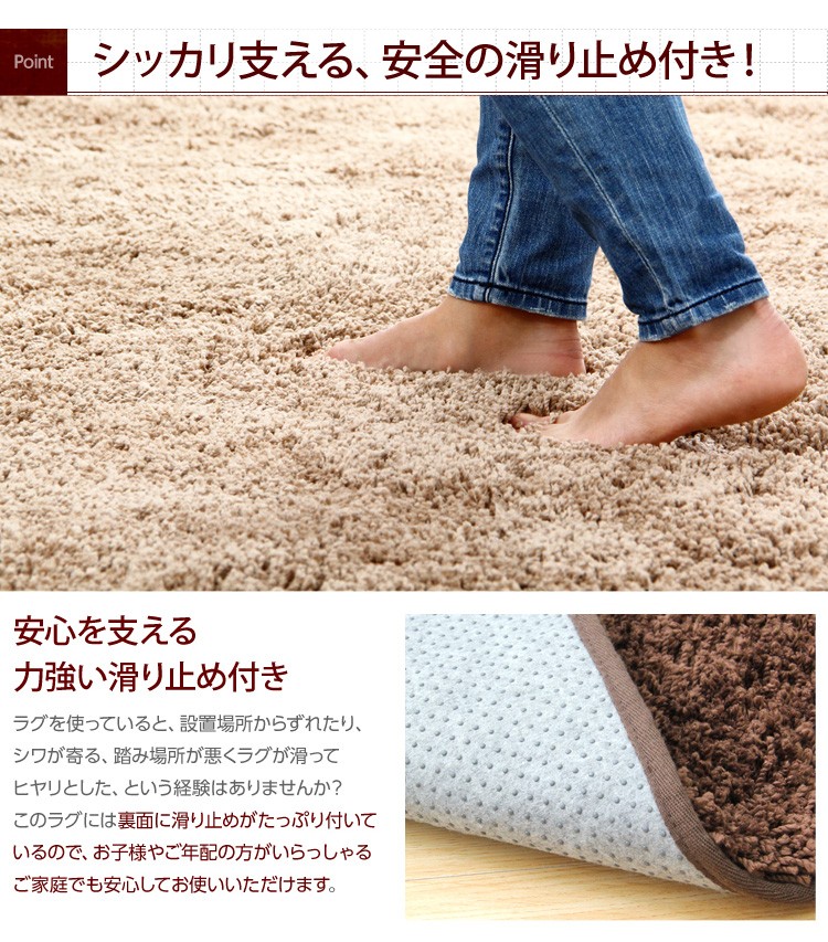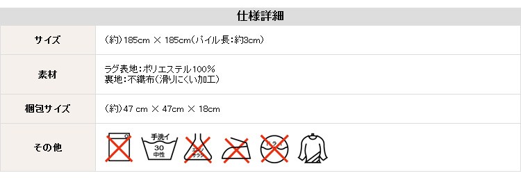 ラグ表地:ポリエステル100% 裏地:不織布(滑りにくい加工付)