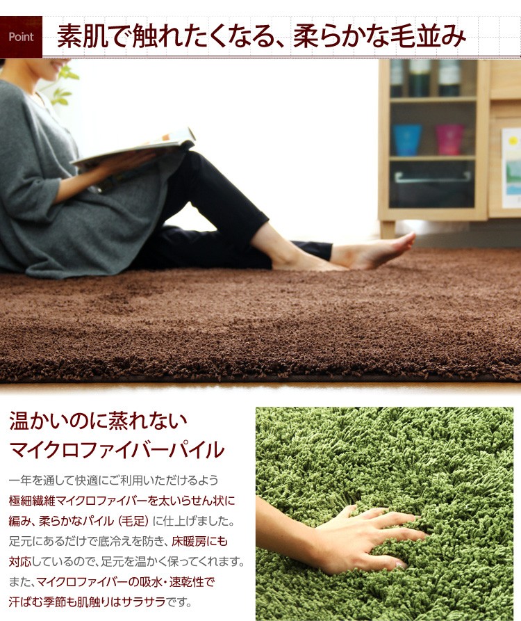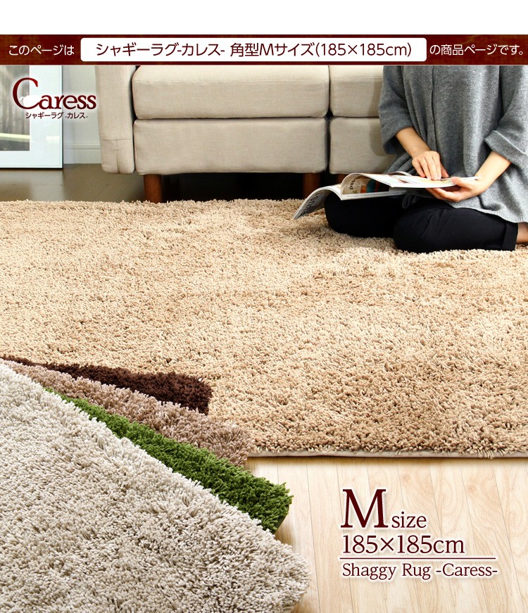 (185×185cm)マイクロファイバーシャギーラグマット【Caress-カレス-(Mサイズ)】