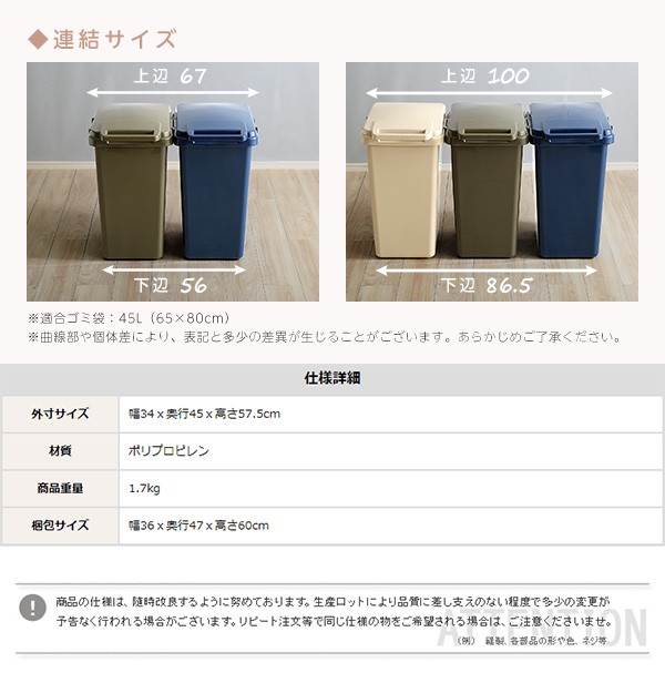 らくらくワンハンド開閉!日本製ダストボックス(大容量45L)ジョイント連結対応【econtainer】