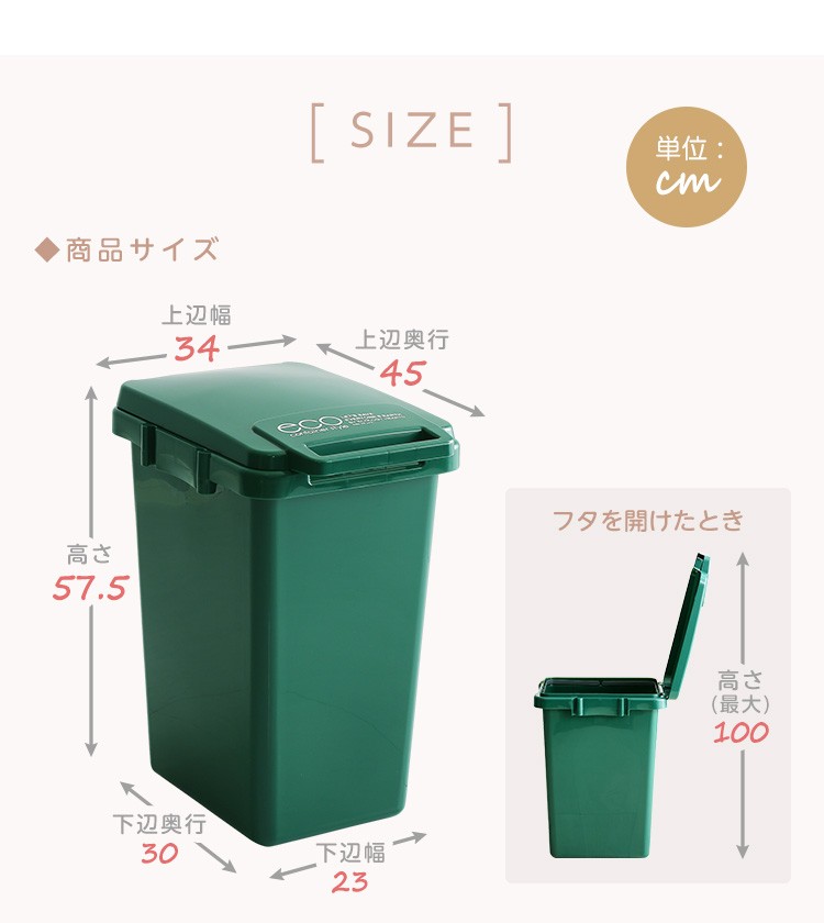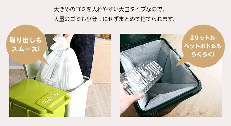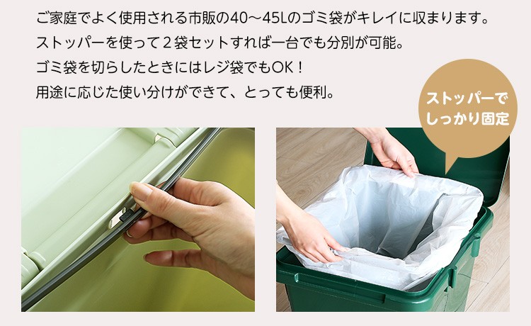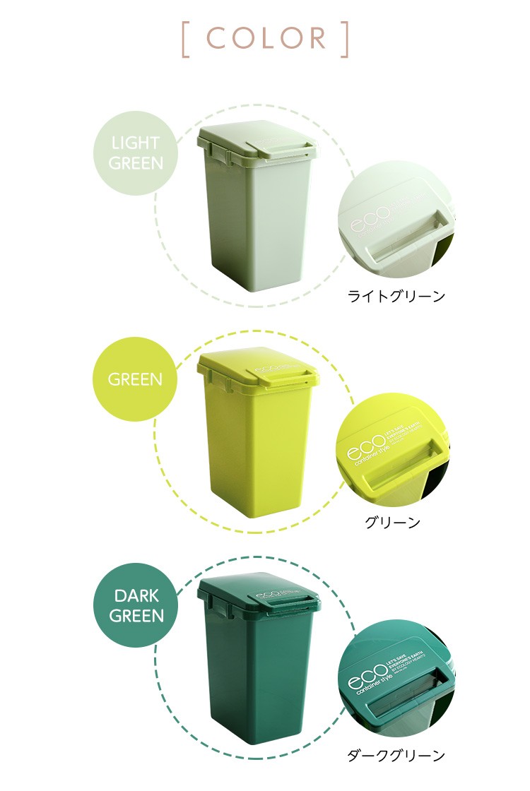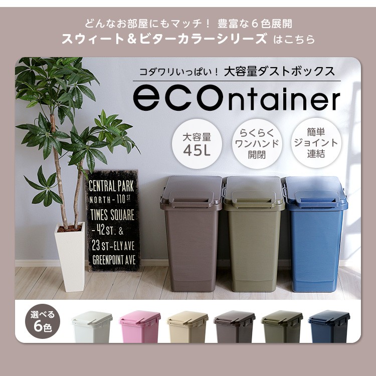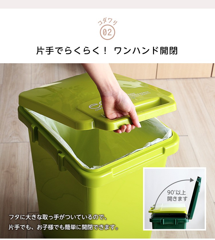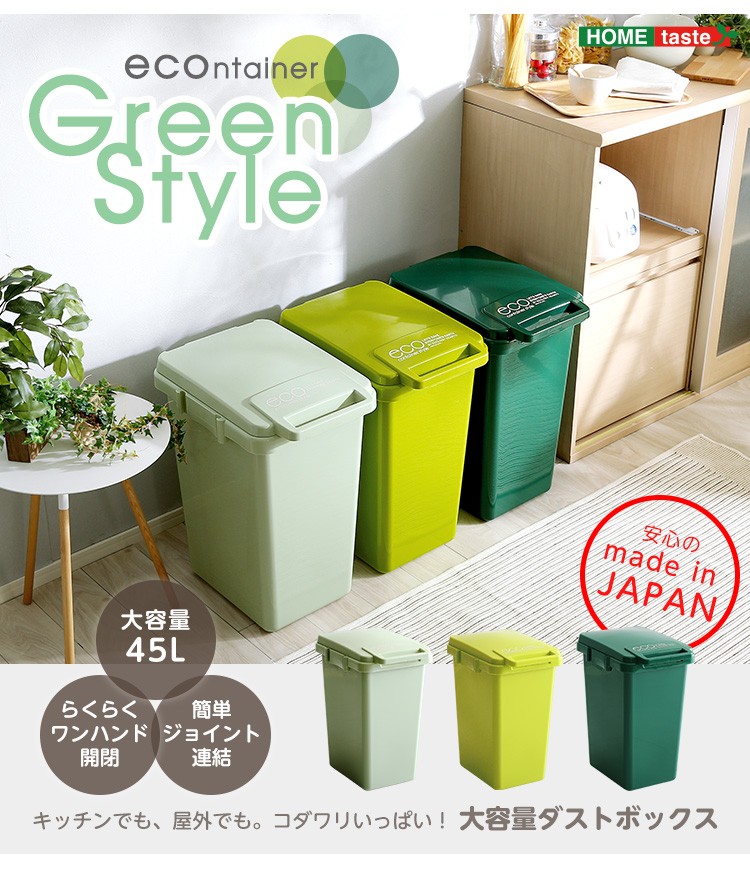 日本製ダストボックス(大容量45L)ジョイント連結対応、ワンハンド開閉【econtainer-GreenStyle-】
