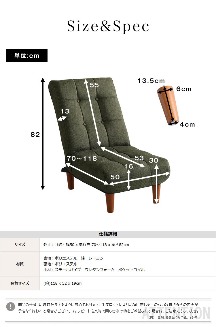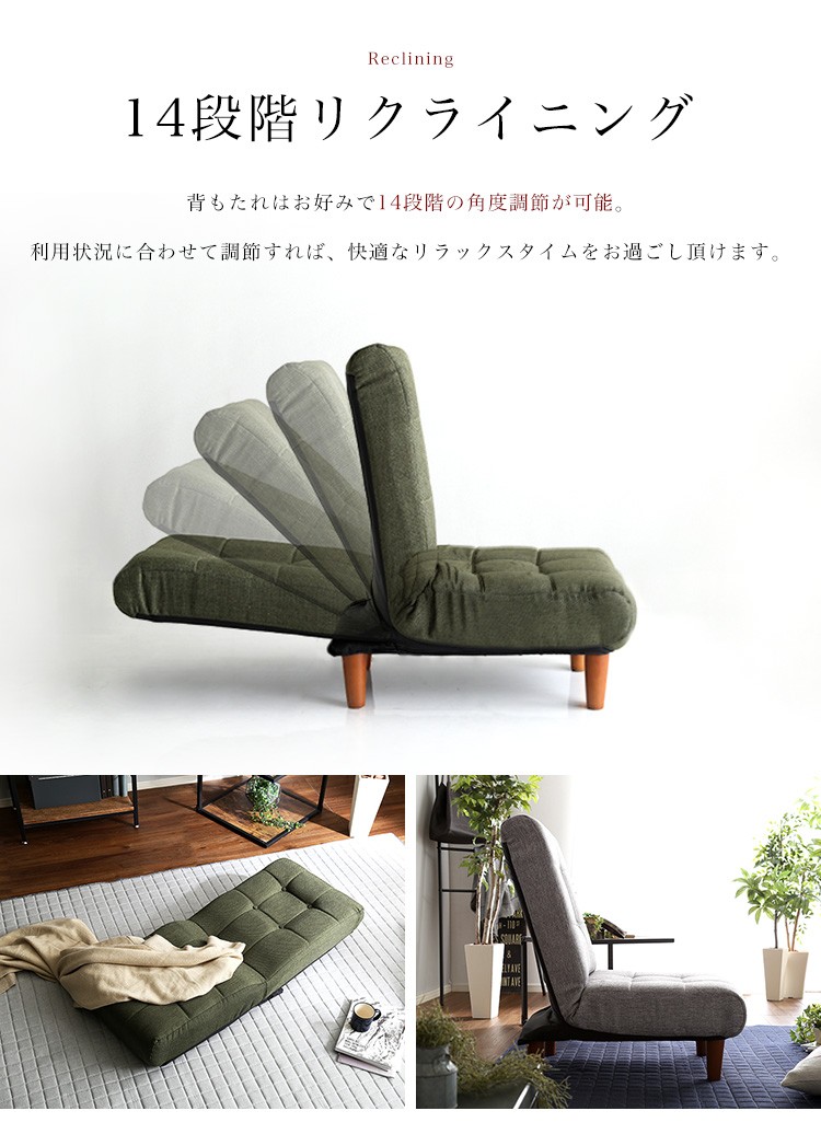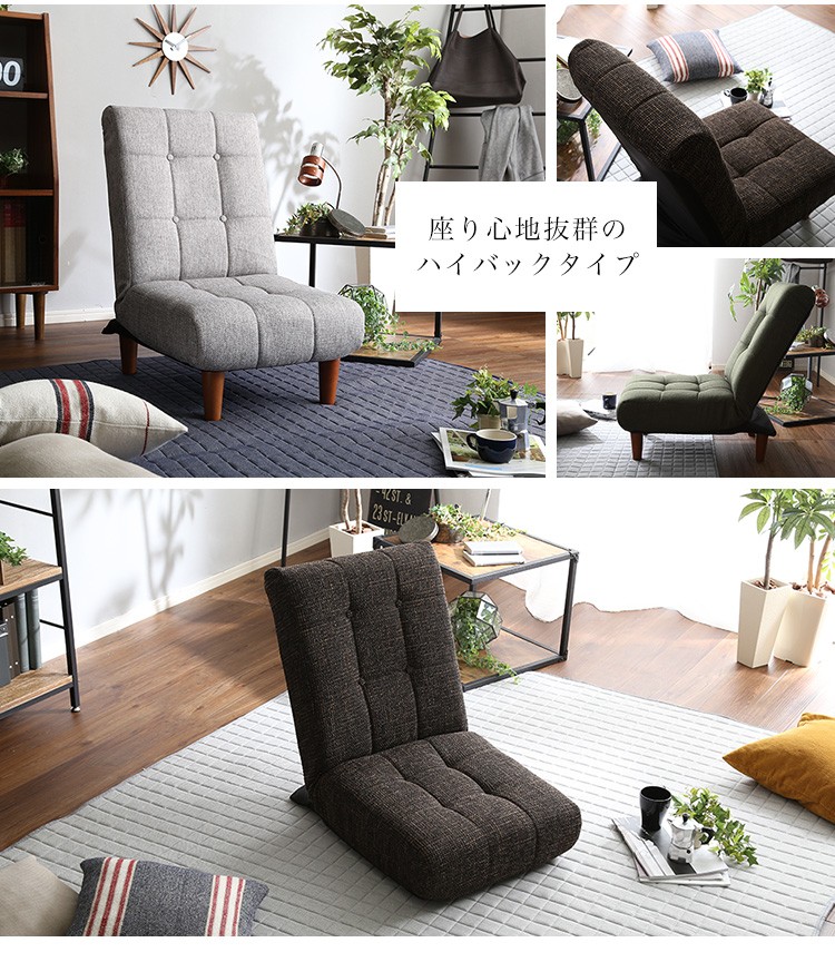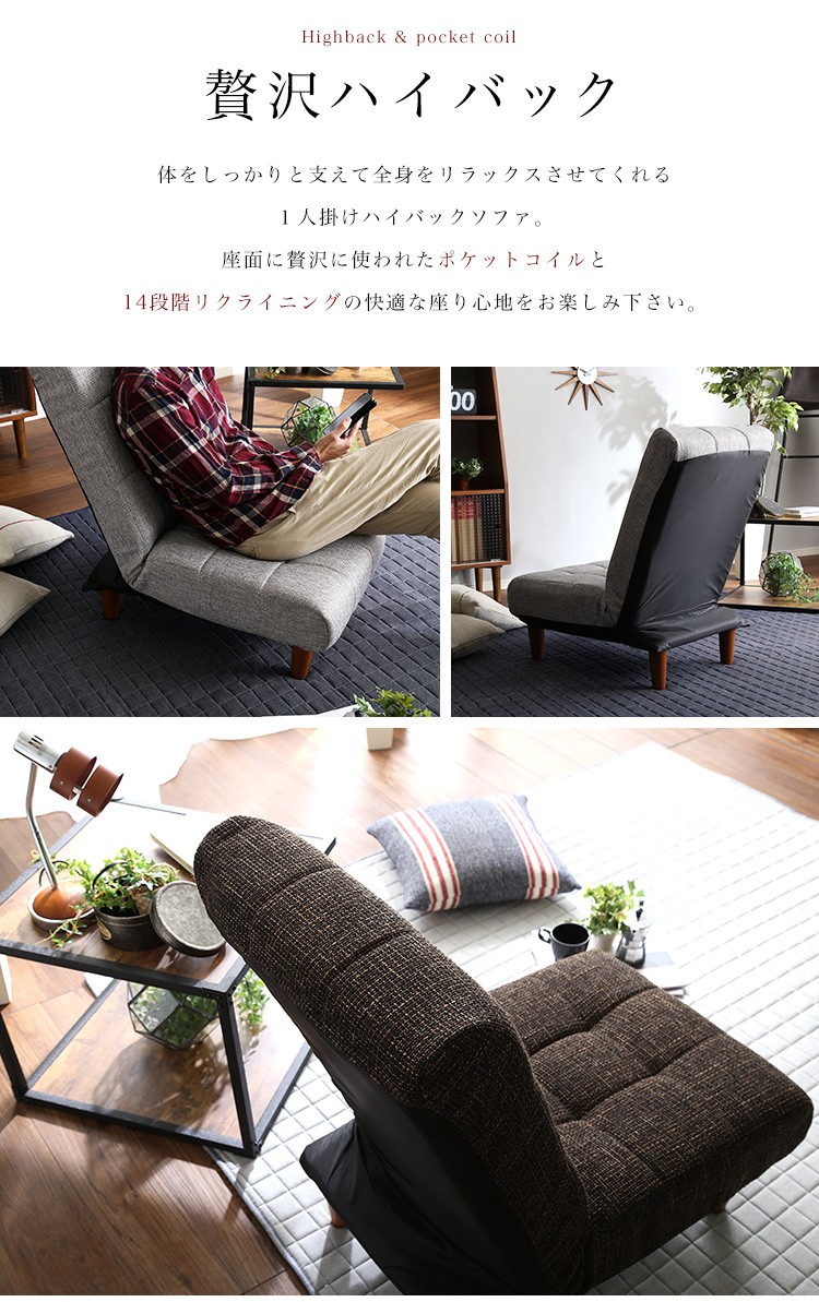 脚付きボリュームフロアソファ(1人掛け)ハイバック、ポケットコイル、14段階リクライニング【Quario-クアリオ-】