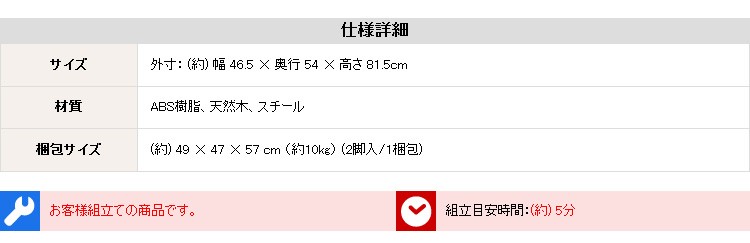 (約)幅46.5x奥行き54x高さ81.5cm(座面高:45cm)