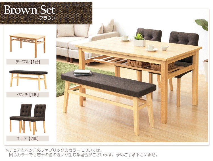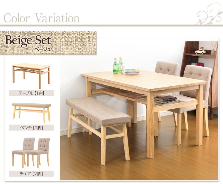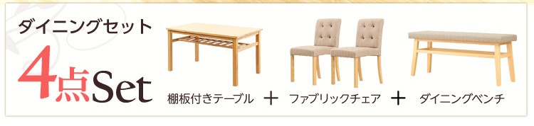ダイニングセット 木製 ベンチ付き ナチュラル 4点