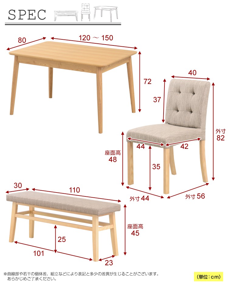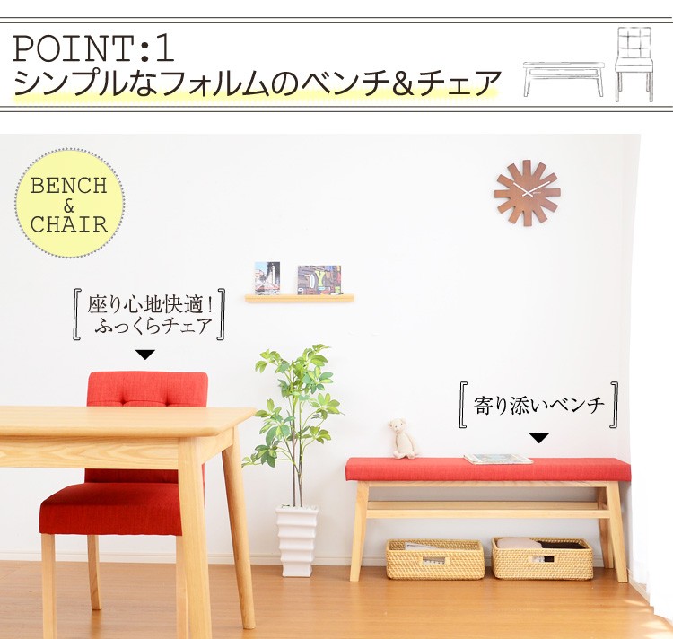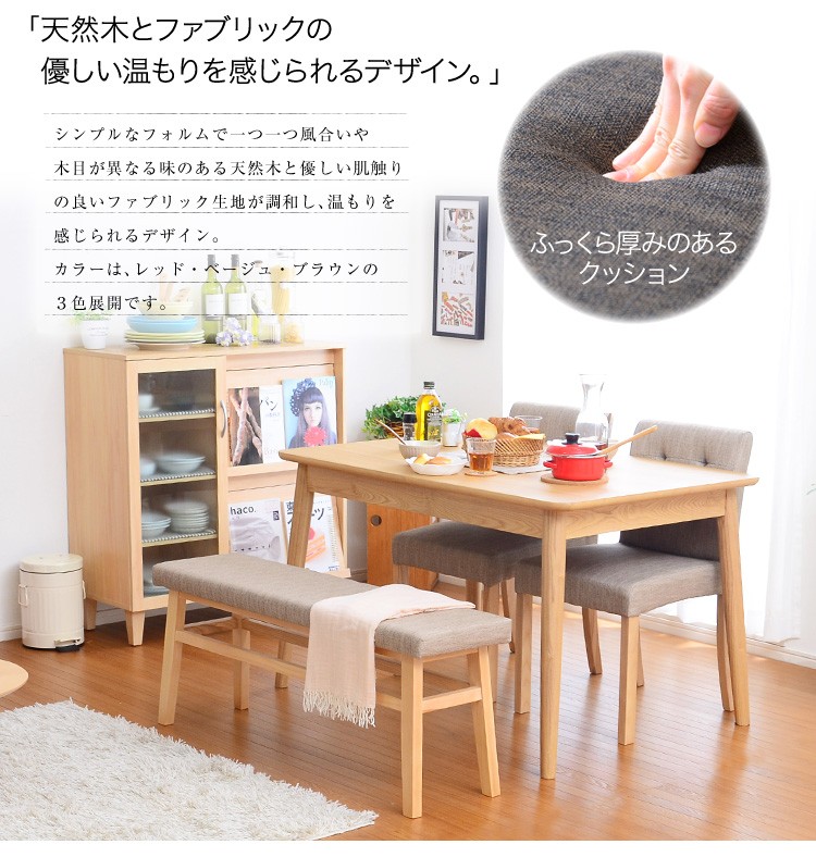ベンチ:天然木化粧繊維板(アッシュ)、ウレタン塗装、ポリエステル、コットン
