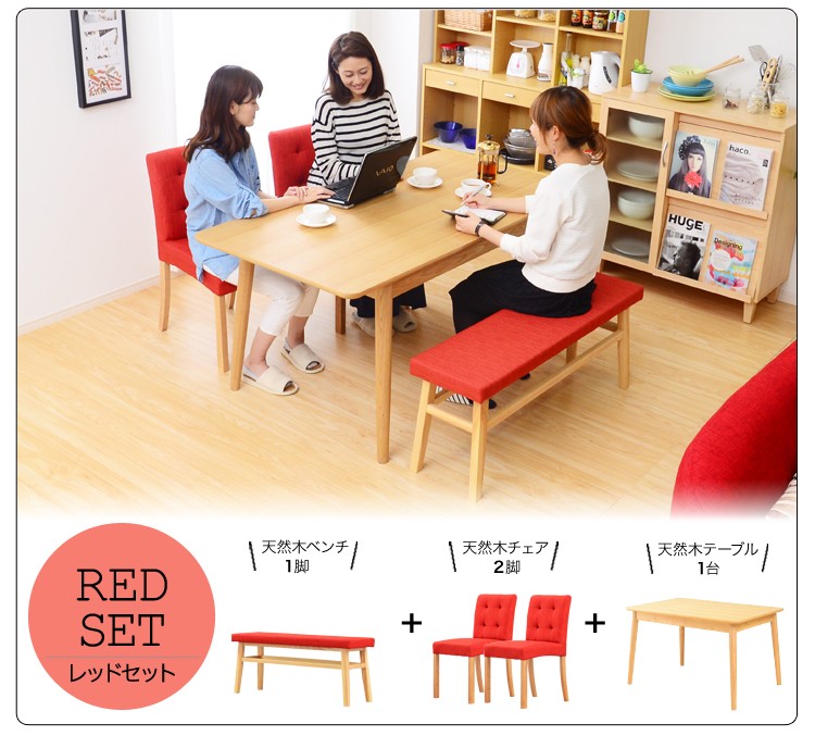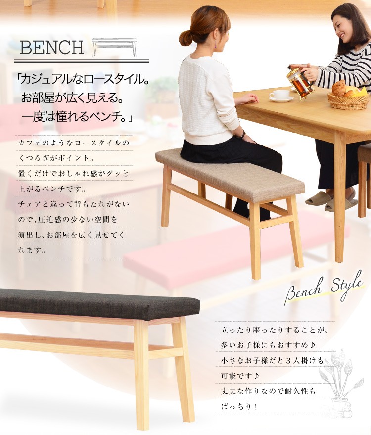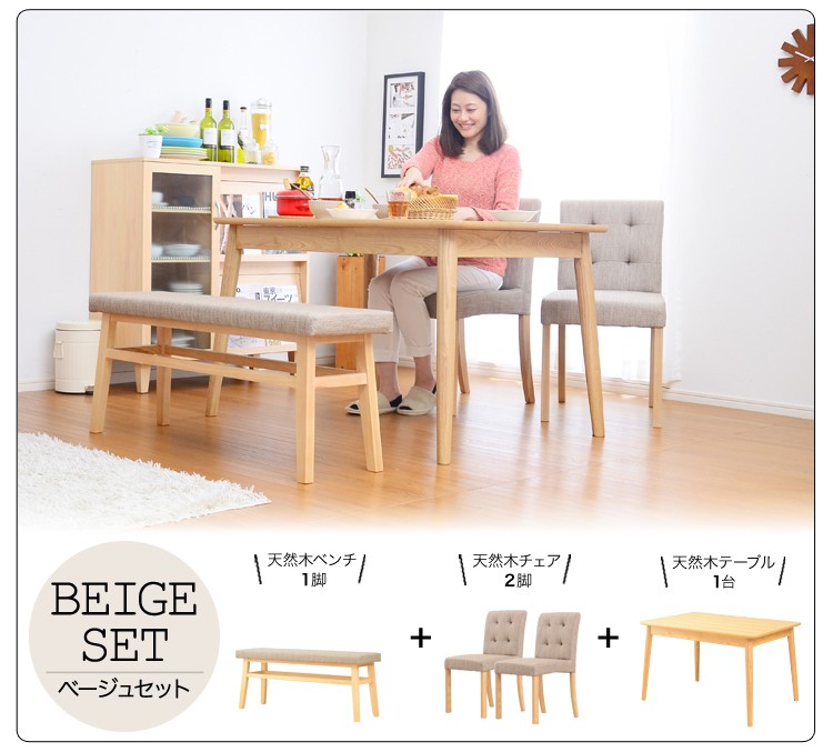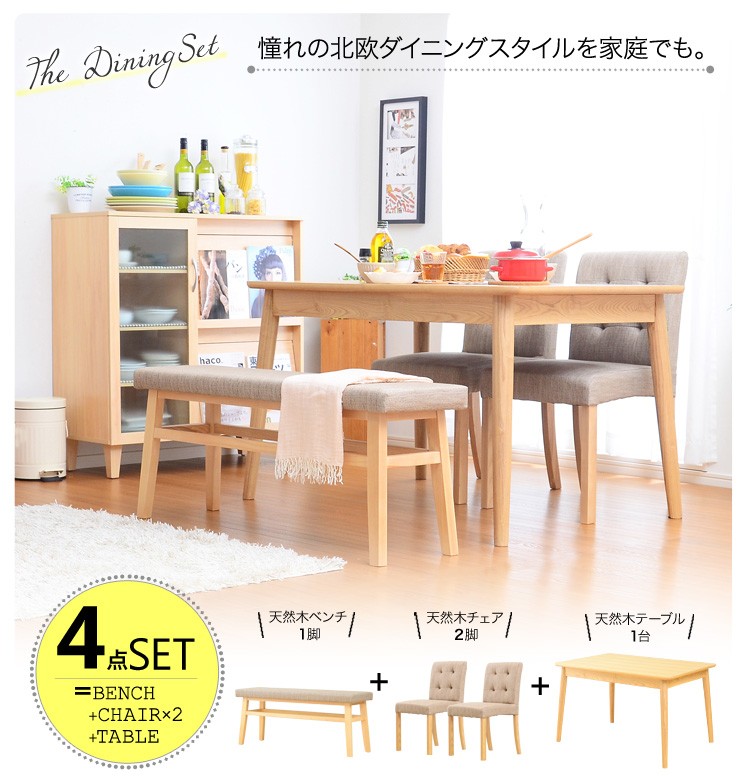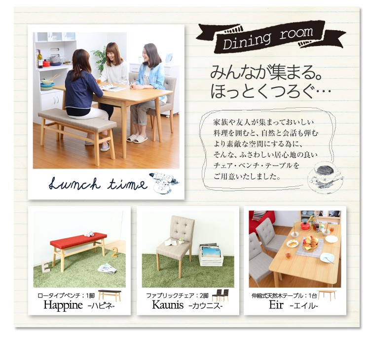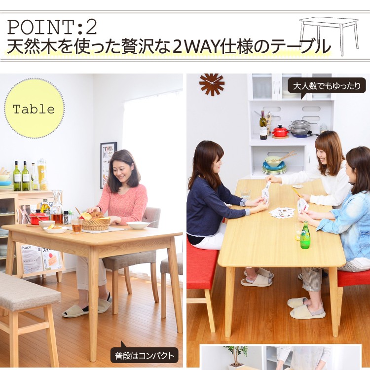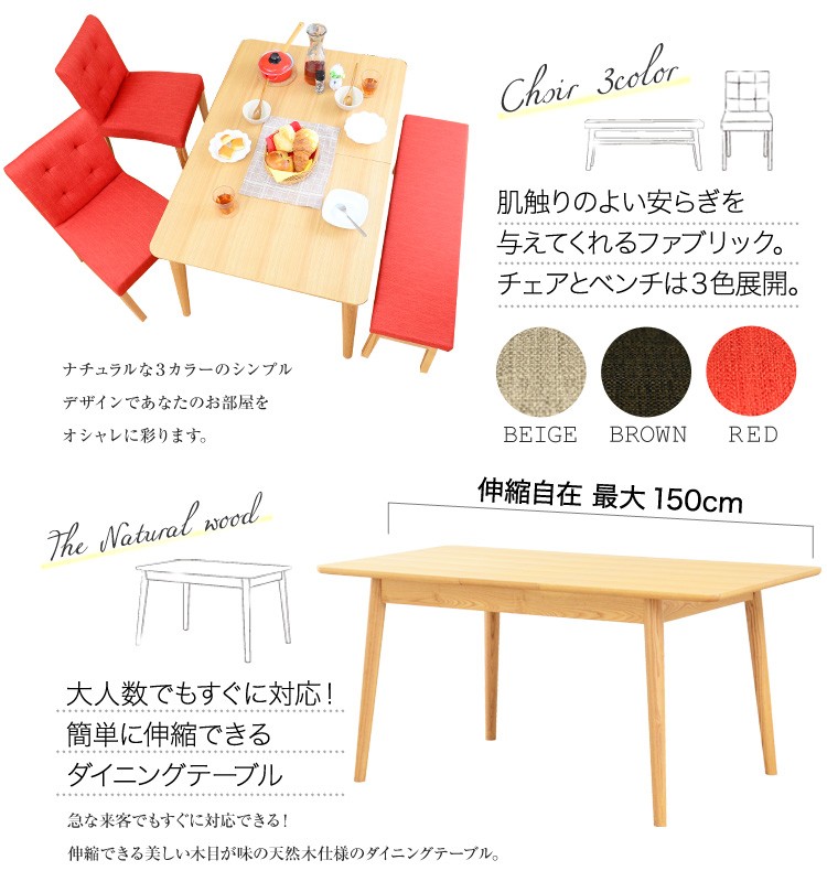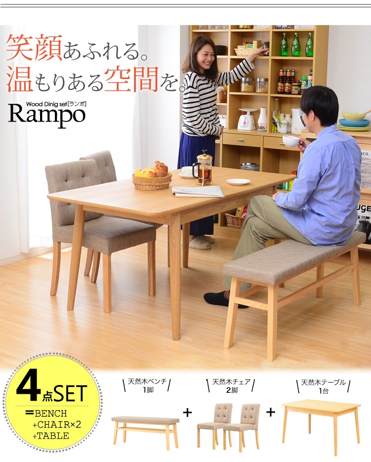 ダイニング4点セット【-Rampo-ランポ】(伸縮テーブル幅120-150・ベンチ&チェア)