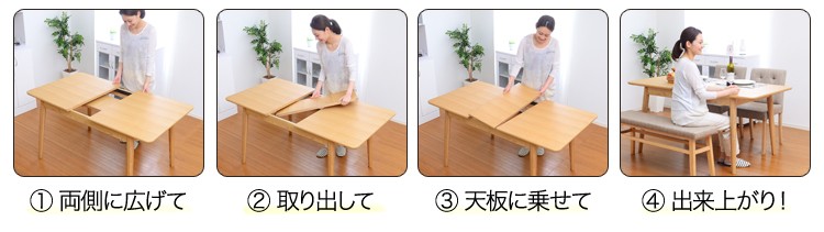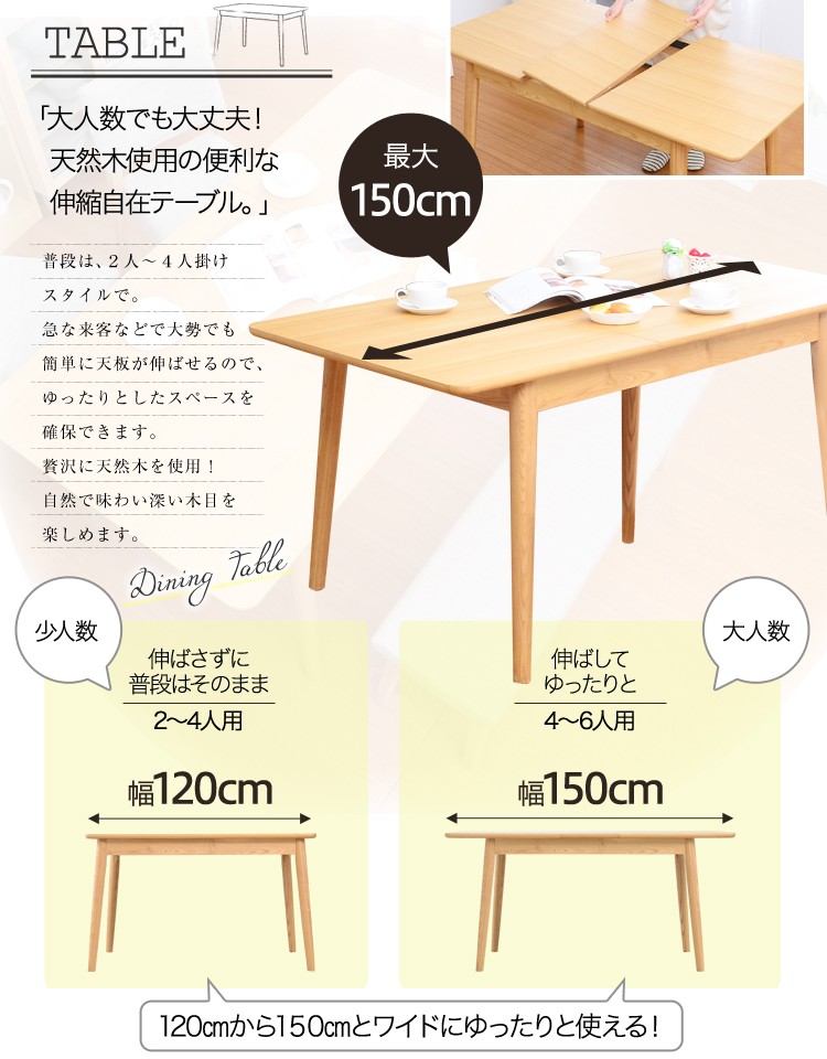 テーブル:(約)幅120〜150x奥行き80x高さ72cm