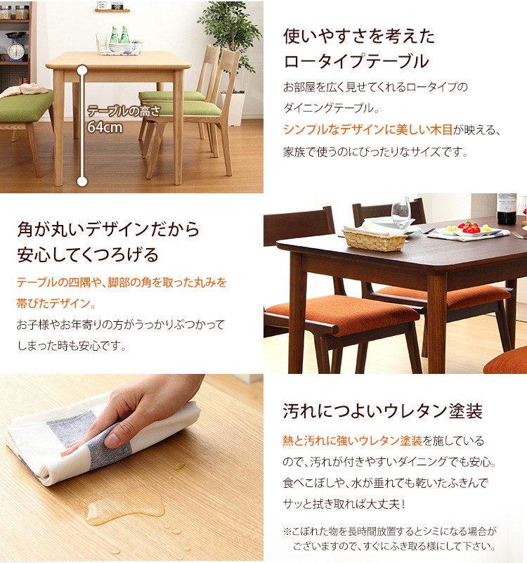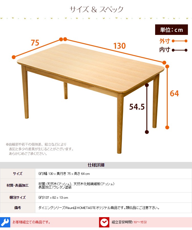 ダイニングテーブル単品(幅130cm) ナチュラルロータイプ 木製アッシュ材|Risum-リスム-