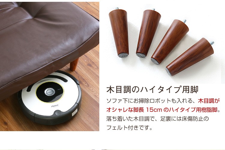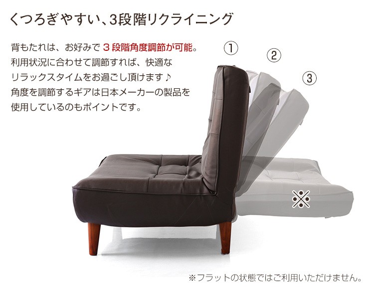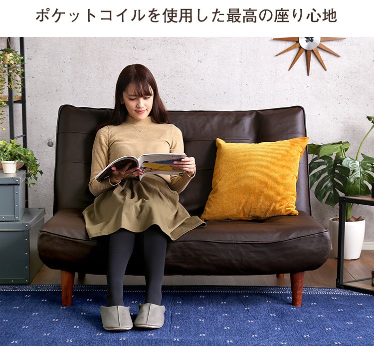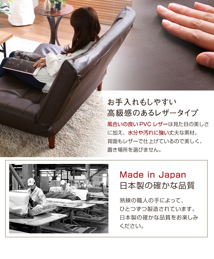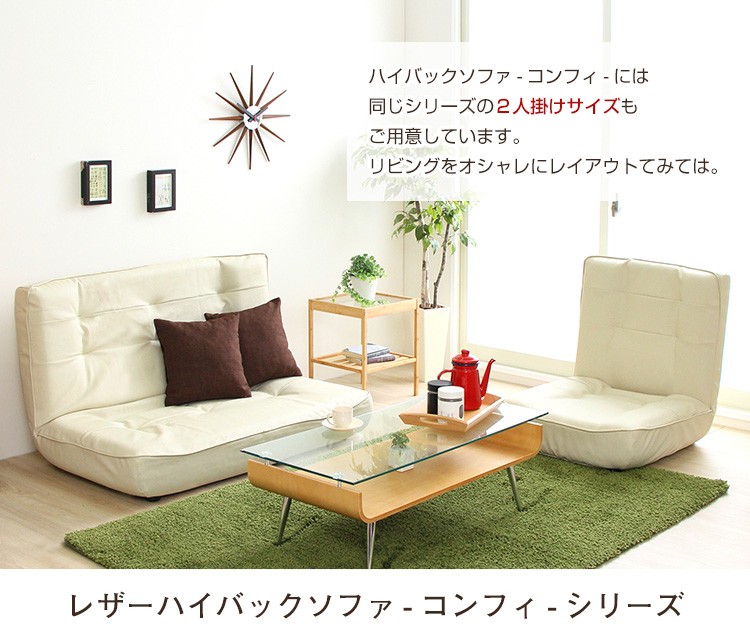 2人掛ハイバックソファ(PVCレザー)ローソファにも、ポケットコイル使用、3段階リクライニング 日本製Comfy-コンフィ-