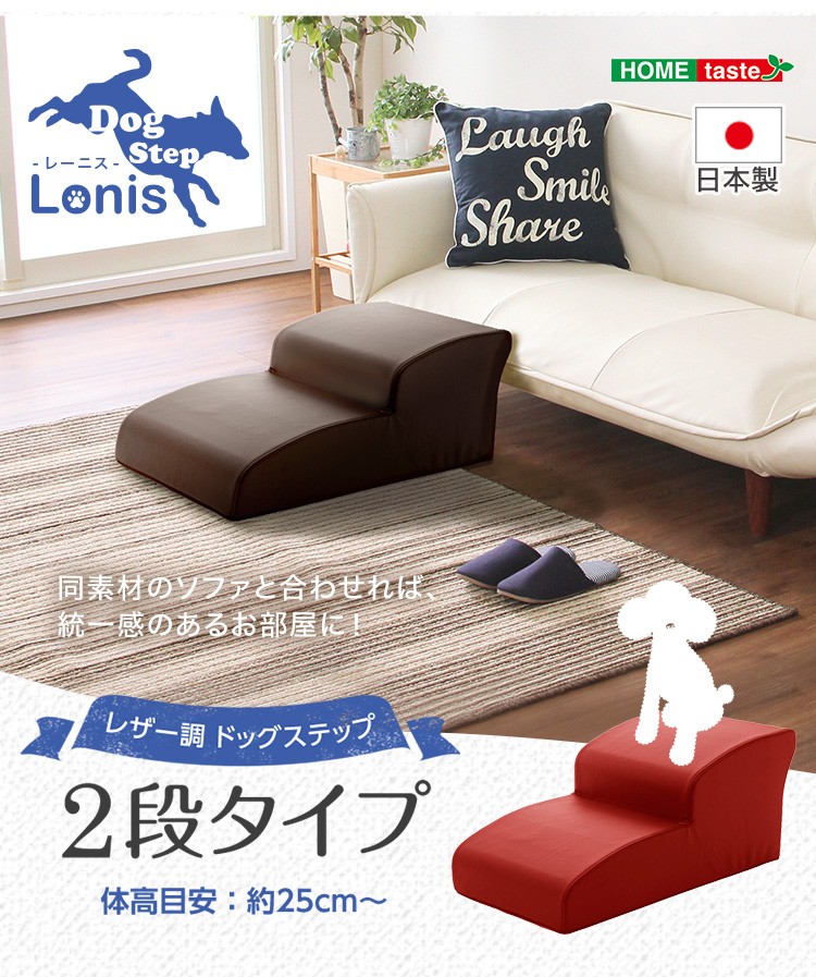 日本製ドッグステップPVCレザー、犬用階段2段タイプ【lonis-レーニス-】