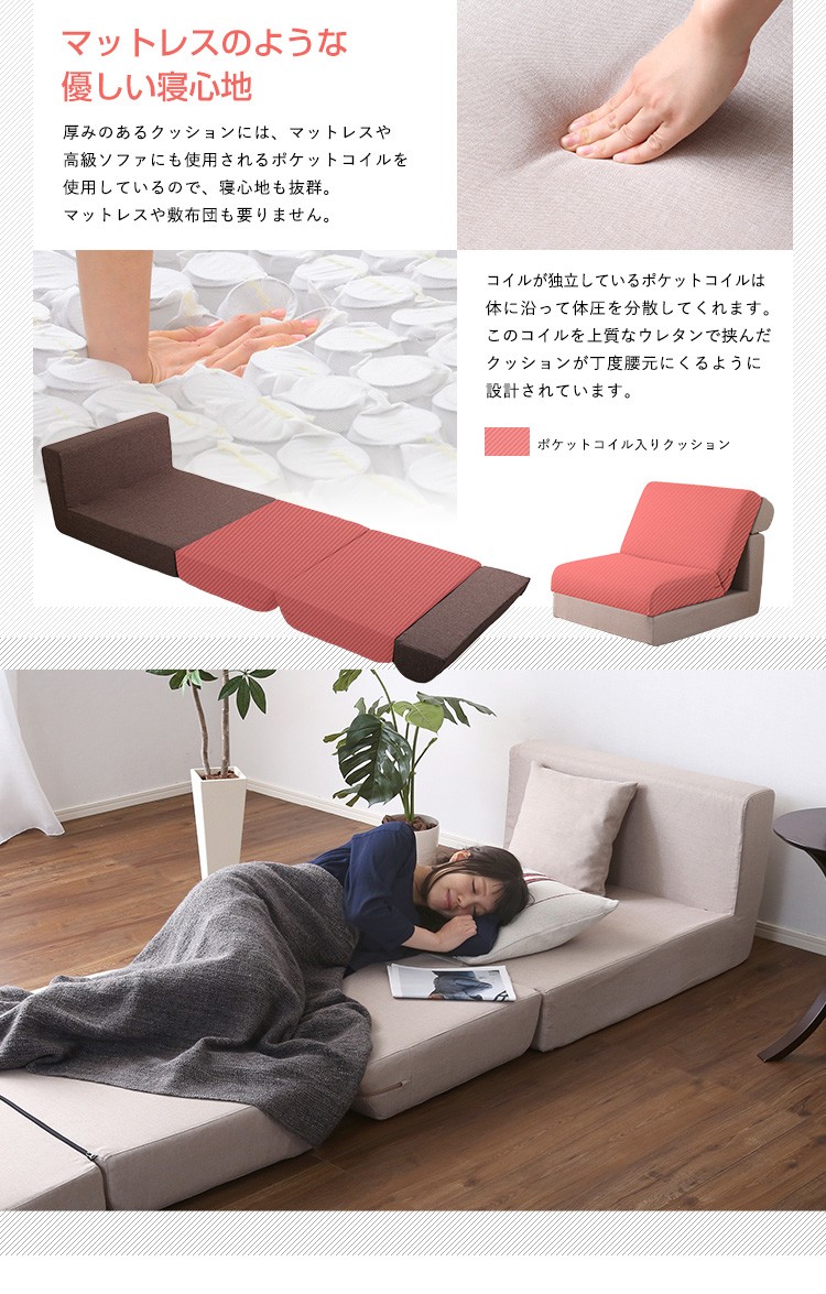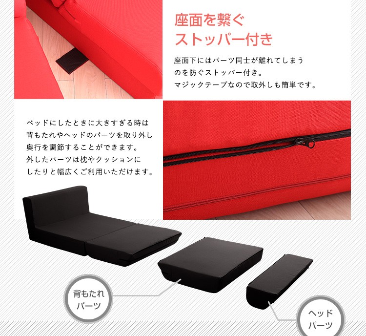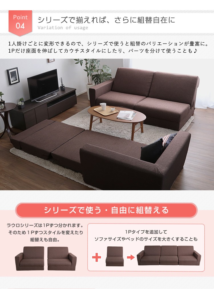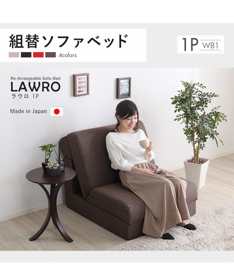 組み換え自由なソファベッド1P【Lawro-ラウロ-】ポケットコイル 1人掛 ソファベッド 日本製 ローベッド カウチ