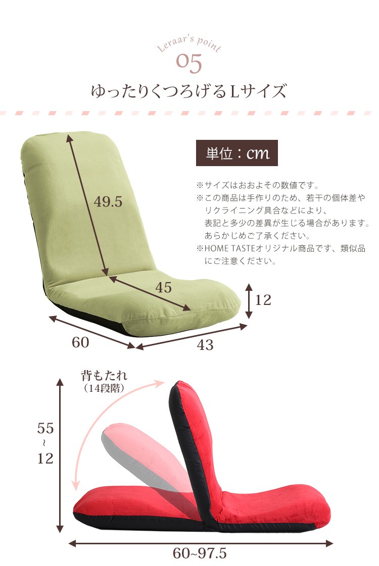 美姿勢習慣、コンパクトなリクライニング座椅子(Lサイズ)日本製 | Leraar-リーラー-