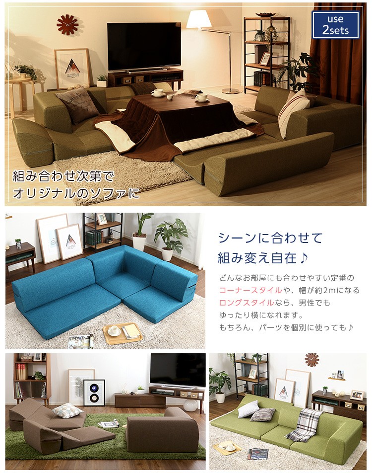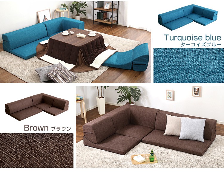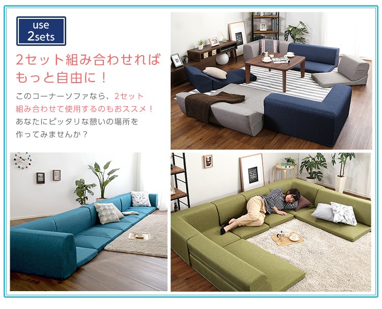コーナーフロアソファ ロータイプ ファブリック 3人掛け(5色)組み替え自由|Linaria-リナリア-
