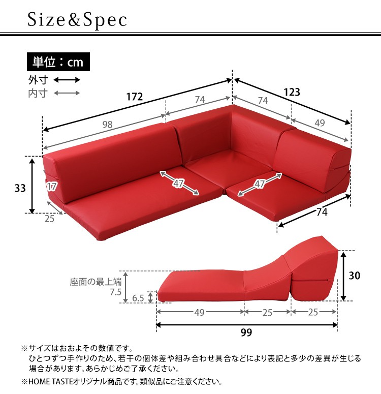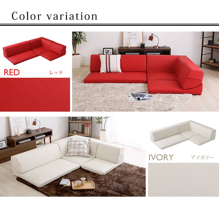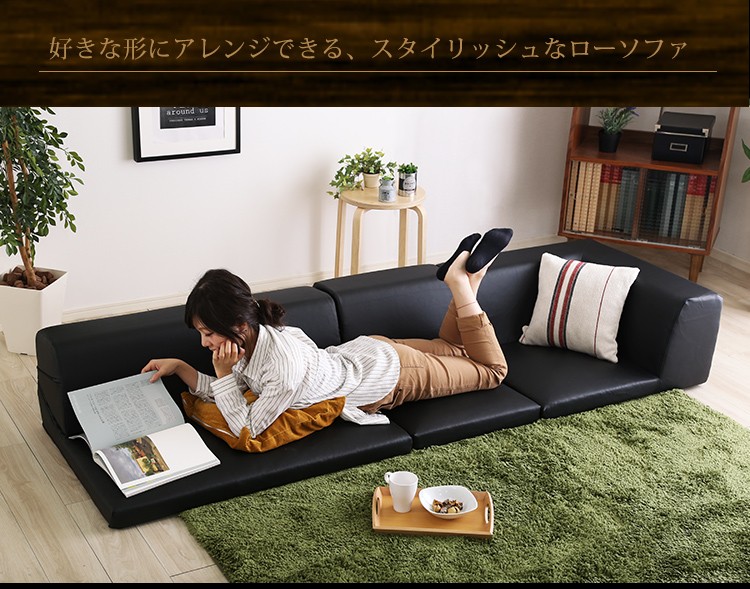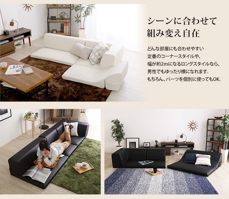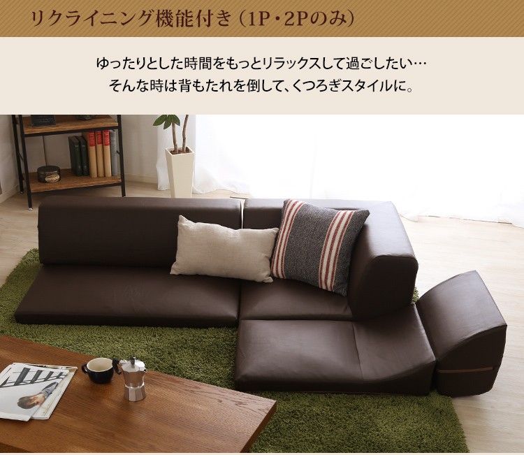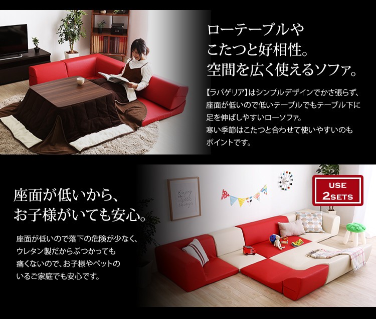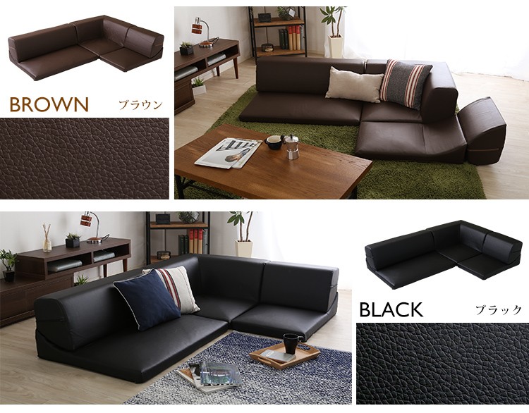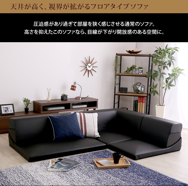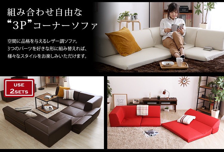 ローコーナーソファ 【Lapageria-ラパゲリア-】 使い方自由自在 フロアソファ レザー調 くつろぎ コーナーソファ 3点 セット
