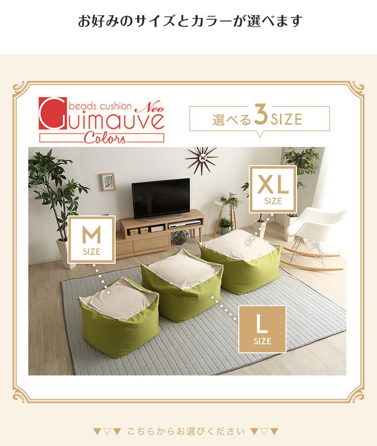 新配合でヘタリにくい キューブ型ビーズクッション ライトカラー |Guimauve Neo-ギモーブネオ- | カラーズ Lサイズ