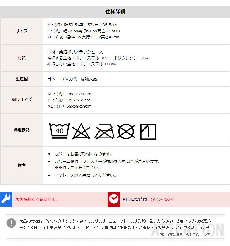 中材:発泡ポリスチレンビーズ/高弾性ウレタンフォーム